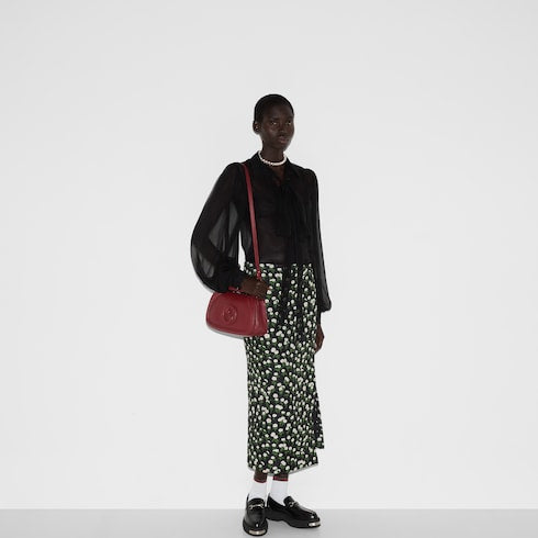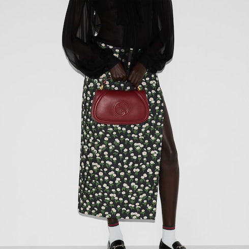 The new Gucci Blondie bag, whose distinctive logo first appeared in the House’s collections in the early 1970s, weaves together past and present in a fusion of nostalgia and modernity. This medium top handle bag with a detachable and adjustable leather shoulder strap is crafted from Gucci Rosso Ancora red smooth leather.