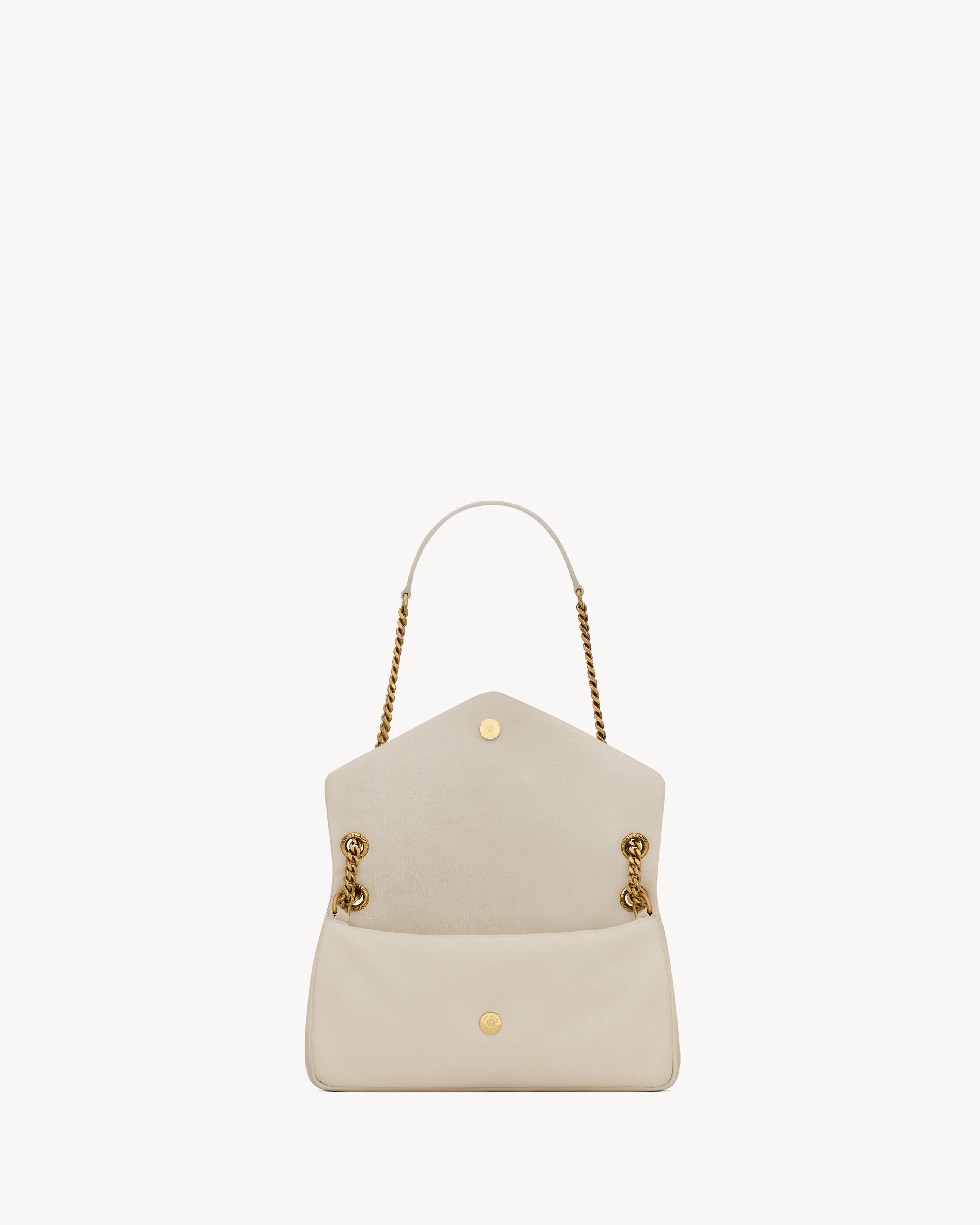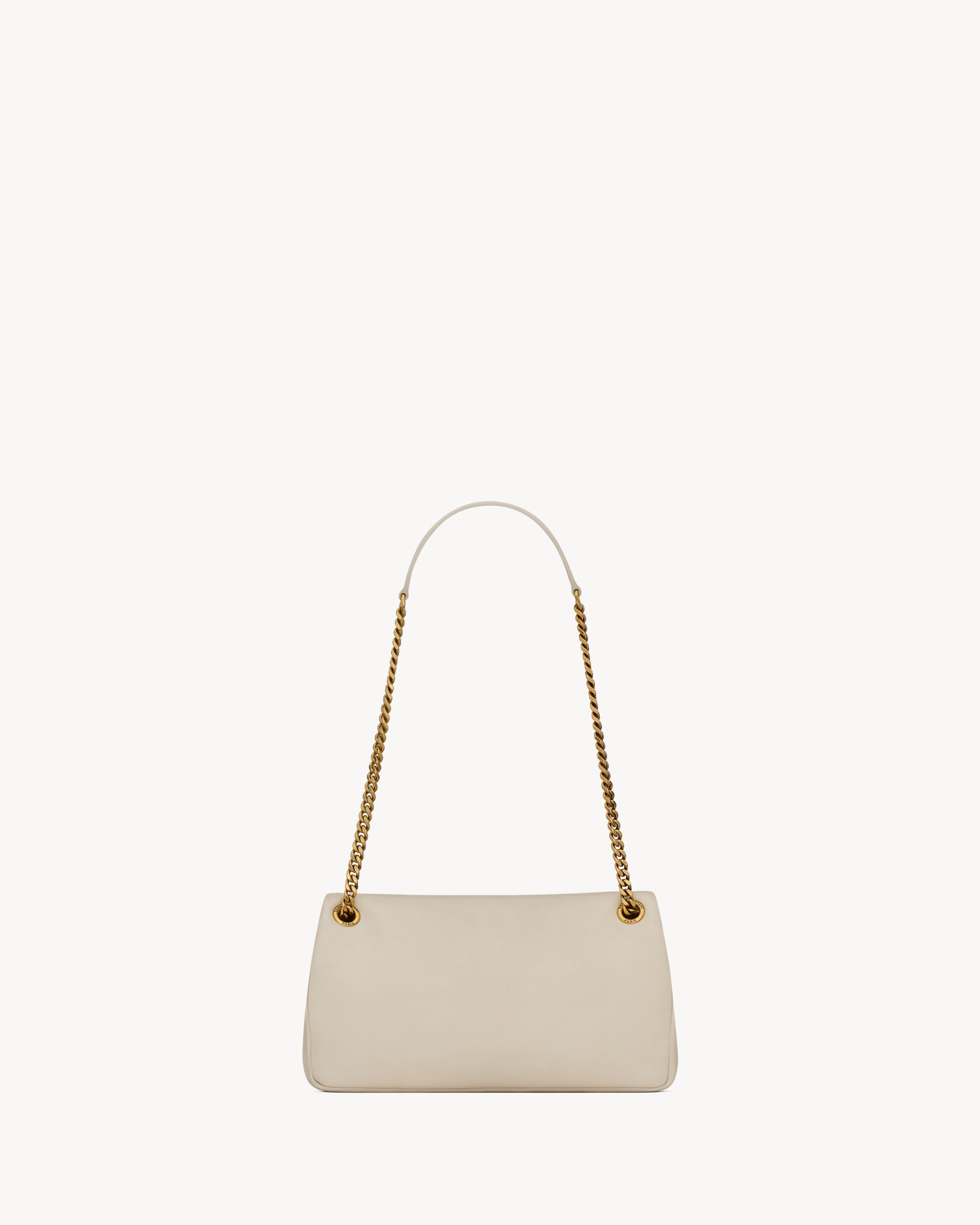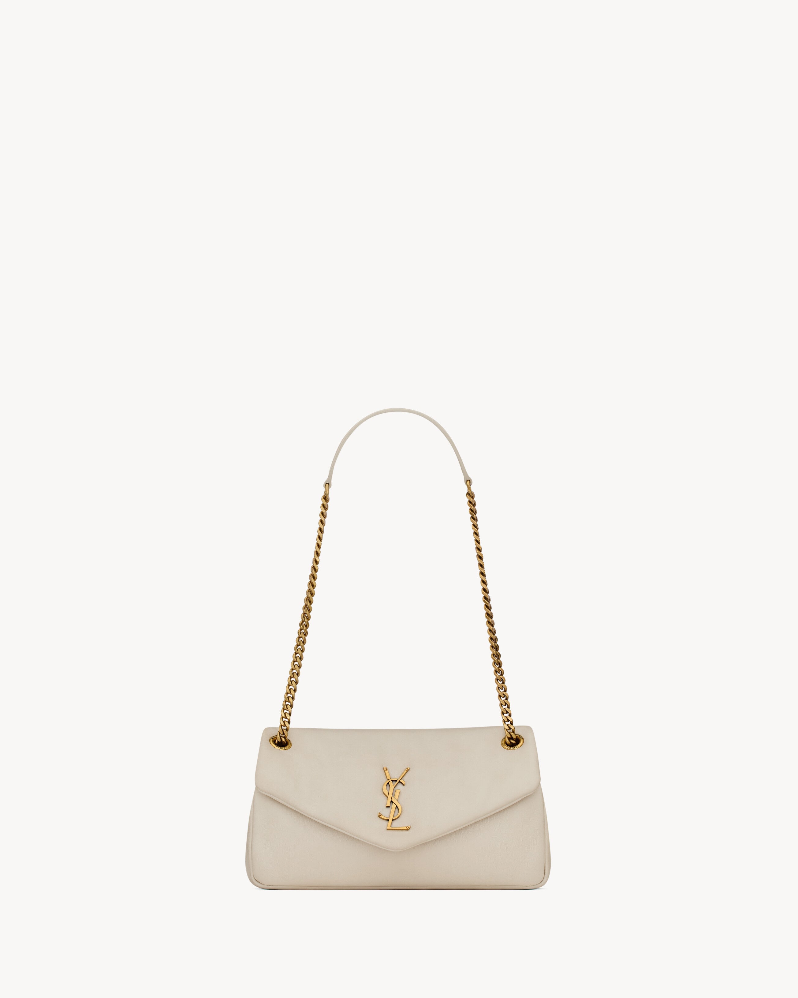 Supple bag in lambskin, decorated with the CASSANDRE. Featuring a sliding chain strap, the bag may be worn on the shoulder or crossbody.Cotton liningLight bronze-toned metal hardwareSnap-button closureone zipped pocketDimensions: 26 x 14 x 7 cm / 10.2 x 5.5 x 2.7 inchesHandle drop: 27/51 cm / 10.6¨C20.1 inchesLAMBSKIN, METALSTYLE ID 734153AACQO9227Made in ITALYProduct CareTo maintain the value and appearance of your goods, please observe the following guidelines:- Avoid contact with water, oily substances, perfumes, make-up and other liquid, alcoholic or fatty substances.- Avoid using generic cleaning products such as shoe polish, trichlorethylene, oils, stain removers, alcohol and solvents.- Avoid contact with rough or abrasive surfaces.- Avoid allowing light-coloured products to come into contact with dark or brightly coloured clothing and vice versa. Colours may transfer from one object to another.- Light-coloured bags, especially white and beige bags, are particularly sensitive to light, dust and stains.- Avoid prolonged exposure to light, direct heat and humidity. Materials may be damaged, and their appearance altered.- In case of contact with water, gently pat the area to absorb moisture with a soft, neutral coloured cloth. Avoid excessive rubbing.- Store the product upright in its protective flannel bag. We recommend padding your bag with tissue paper to maintain its shape.
