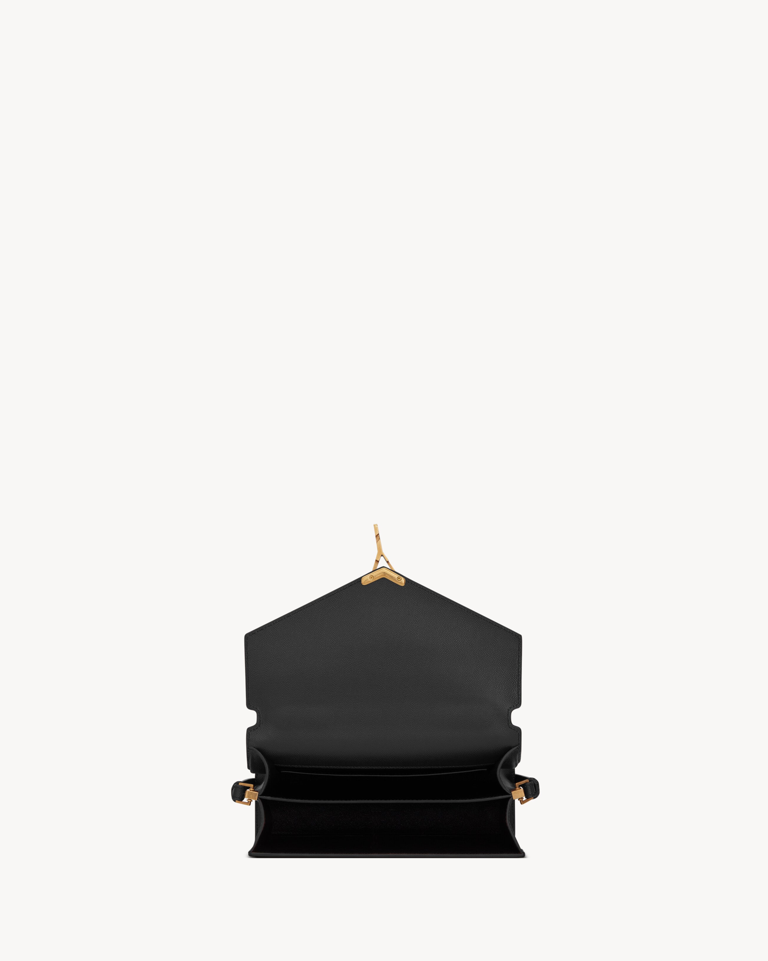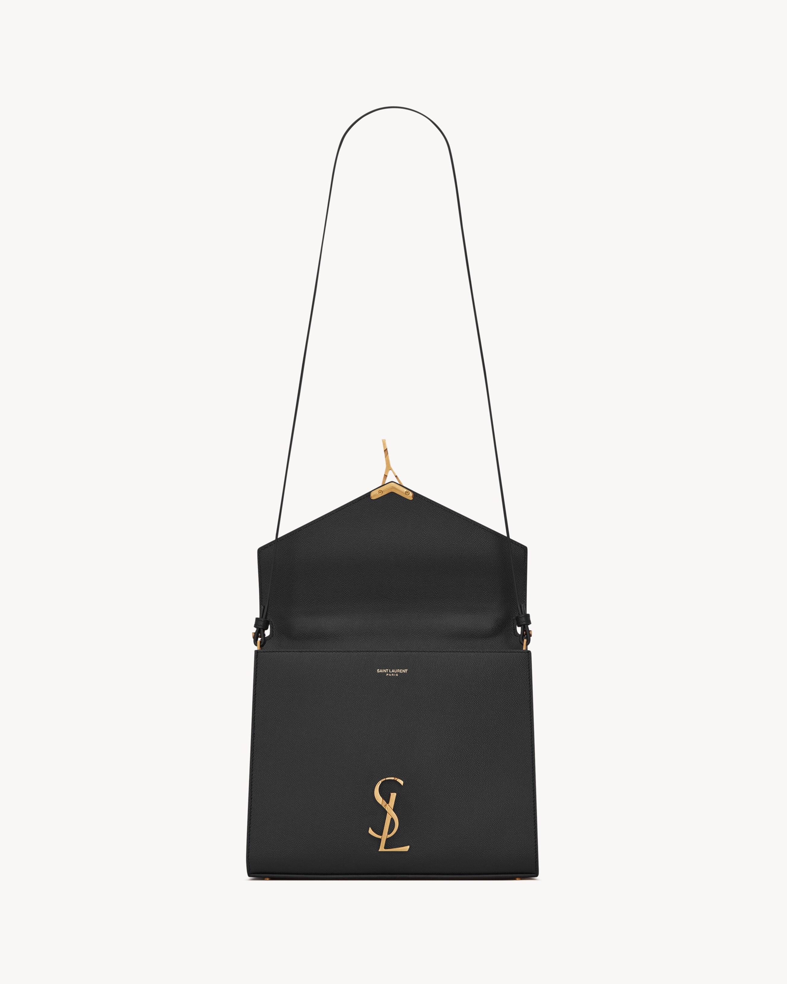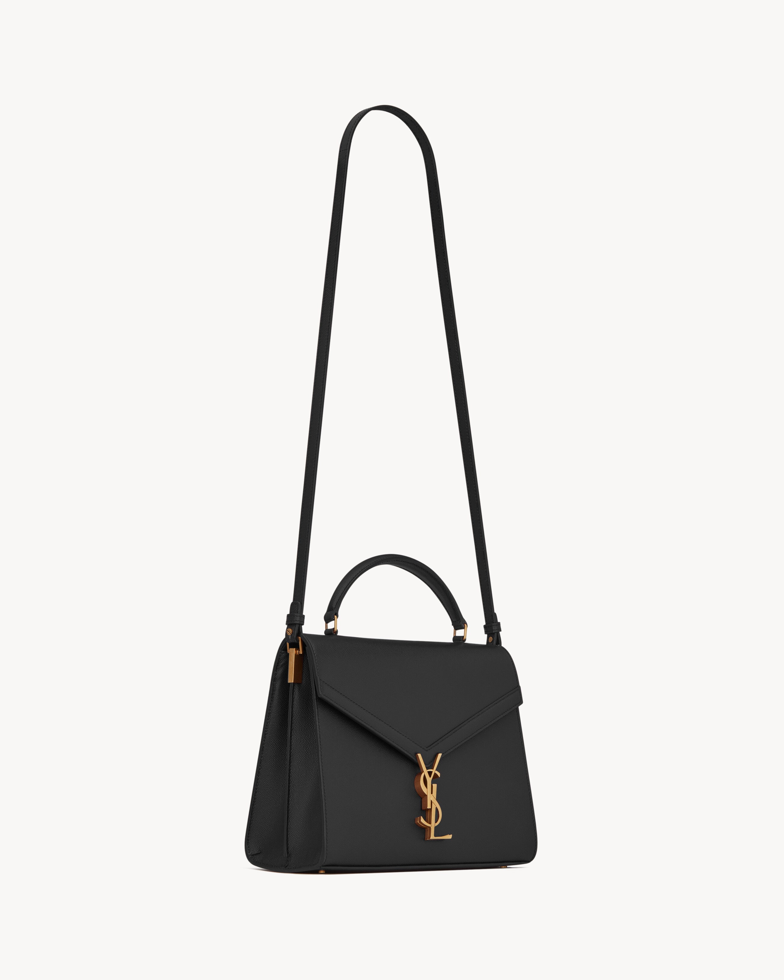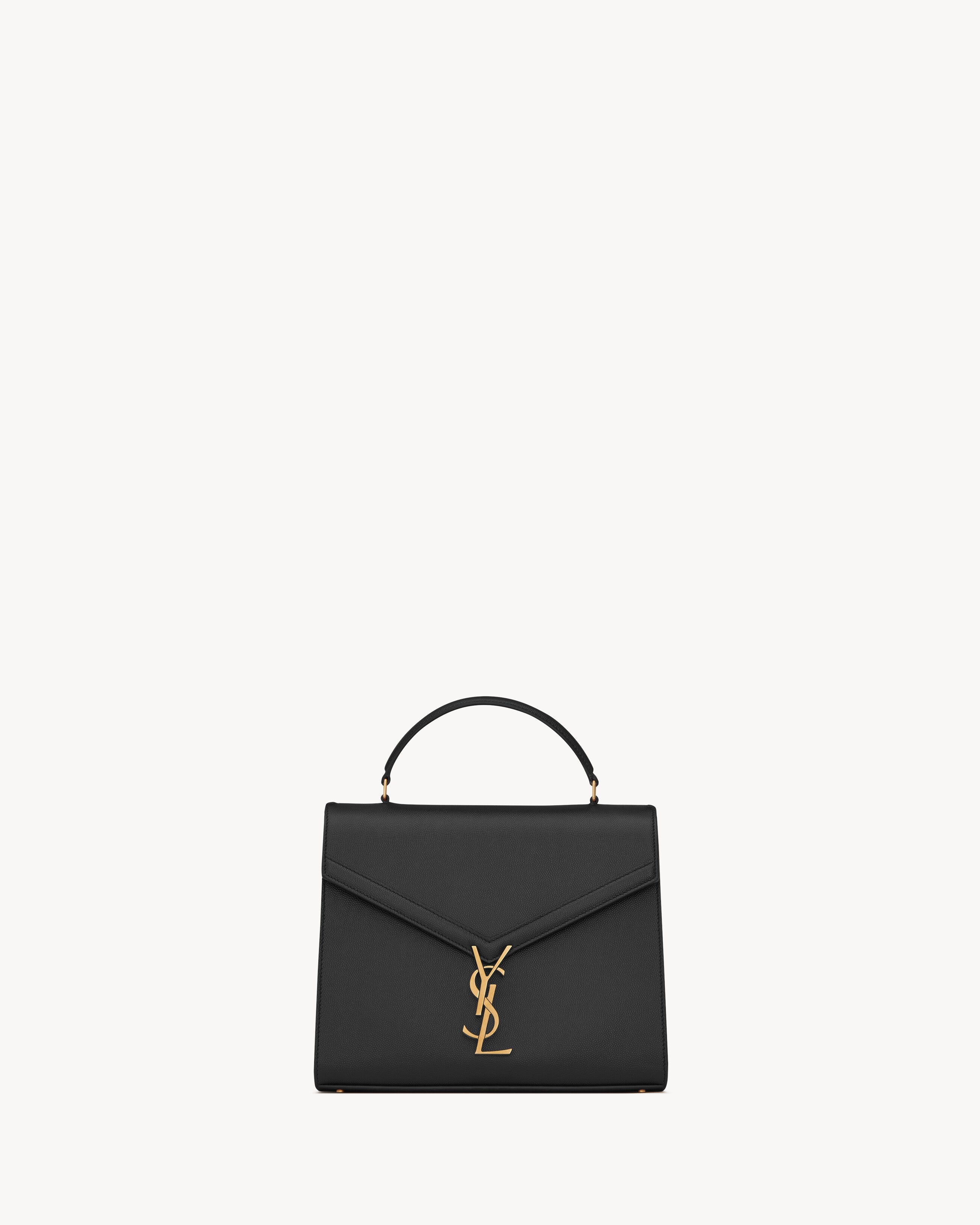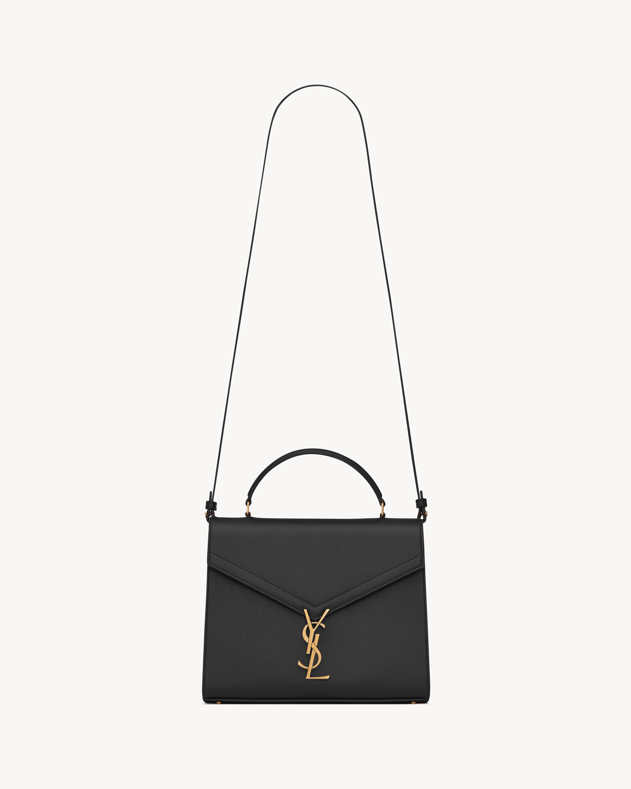 Bag made with metal-free tanned leather with front flap and pivoting metal CASSANDRE closure, featuring a padded leather top handle and an adjustable and detachable shoulder strap.CHROME FREE AND METAL FREE TANNED LEATHERDimensions: 24,5 x 20 x 11,5 CM / 9.6 x 7.8 x 4.5 INCHESHandle drop: 7cmShoulder strap drop: 50 cmbronze-toned metal hardwarepivoting YSL closureexterior: one dossier pocket at the backfour metal feetinterior: two main compartments, one flat pocketleather liningCALFSKIN LEATHERSTYLE ID 623931BOW0W1000Made in ITALYProduct CareTo maintain the value and appearance of your goods, please observe the following guidelines:- Avoid contact with water, oily substances, perfumes, make-up and other liquid, alcoholic or fatty substances.- Avoid using generic cleaning products such as shoe polish, trichlorethylene, oils, stain removers, alcohol and solvents.- Avoid contact with rough or abrasive surfaces.- Avoid allowing light-coloured products to come into contact with dark or brightly coloured clothing and vice versa. Colours may transfer from one object to another.- Light-coloured bags, especially white and beige bags, are particularly sensitive to light, dust and stains.- Avoid prolonged exposure to light, direct heat and humidity. Materials may be damaged, and their appearance altered.- In case of contact with water, gently pat the area to absorb moisture with a soft, neutral coloured cloth. Avoid excessive rubbing.- Store the product upright in its protective flannel bag. We recommend padding your bag with tissue paper to maintain its shape.