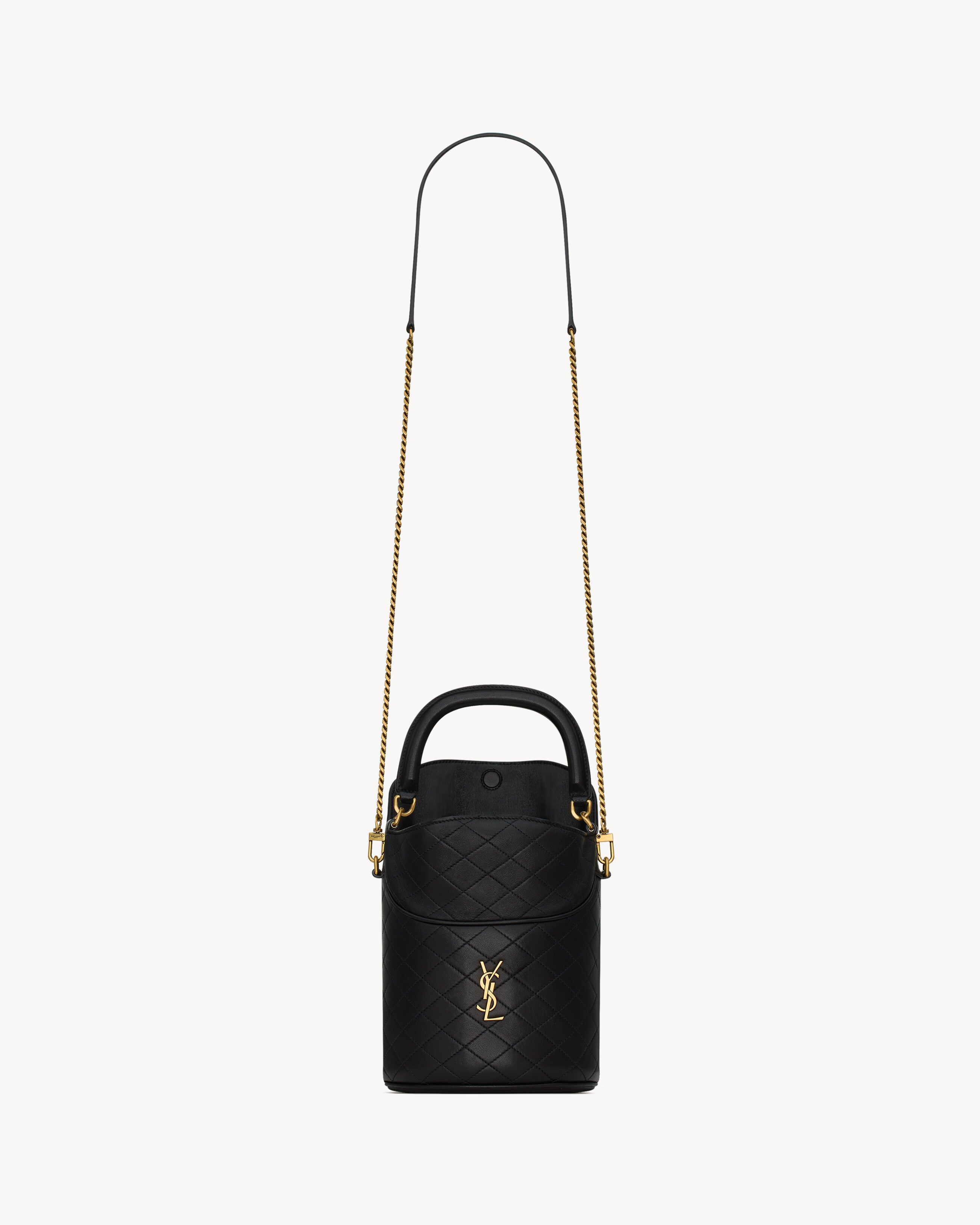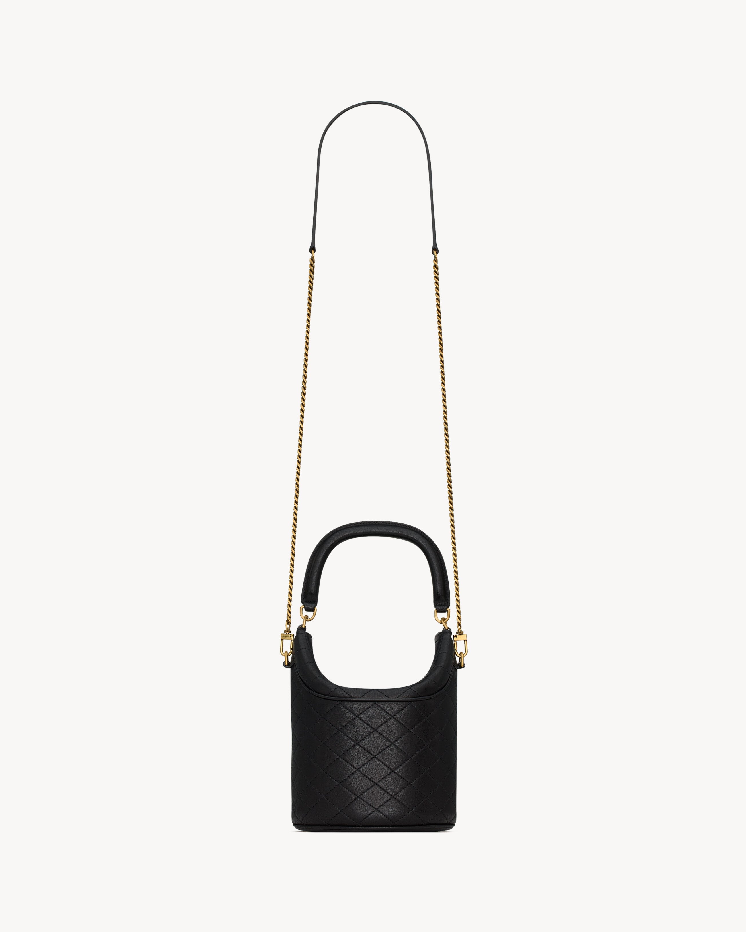 bucket bag with flap top, decorated with the CASSANDRE and diamond-quilted overstitching. This versatile piece features a rotating leather top handle and detachable leather-and-chain strap designed for shoulder or crossbody carry.bronze-toned hardwaremagnetic flap closuredimensions: 19 x 17 x 15 cm / 7.5" x 6.7" x 5.9"STRAP DROP: 58 CM / 22.8"LAMBSKIN, BRASSSTYLE ID 7639611EL071000Made in ITALYProduct CareTo maintain the value and appearance of your goods, please observe the following guidelines:- Avoid contact with water, oily substances, perfumes, make-up and other liquid, alcoholic or fatty substances.- Avoid using generic cleaning products such as shoe polish, trichlorethylene, oils, stain removers, alcohol and solvents.- Avoid contact with rough or abrasive surfaces.- Avoid allowing light-coloured products to come into contact with dark or brightly coloured clothing and vice versa. Colours may transfer from one object to another.- Light-coloured bags, especially white and beige bags, are particularly sensitive to light, dust and stains.- Avoid prolonged exposure to light, direct heat and humidity. Materials may be damaged, and their appearance altered.- In case of contact with water, gently pat the area to absorb moisture with a soft, neutral coloured cloth. Avoid excessive rubbing.- Store the product upright in its protective flannel bag. We recommend padding your bag with tissue paper to maintain its shape.
