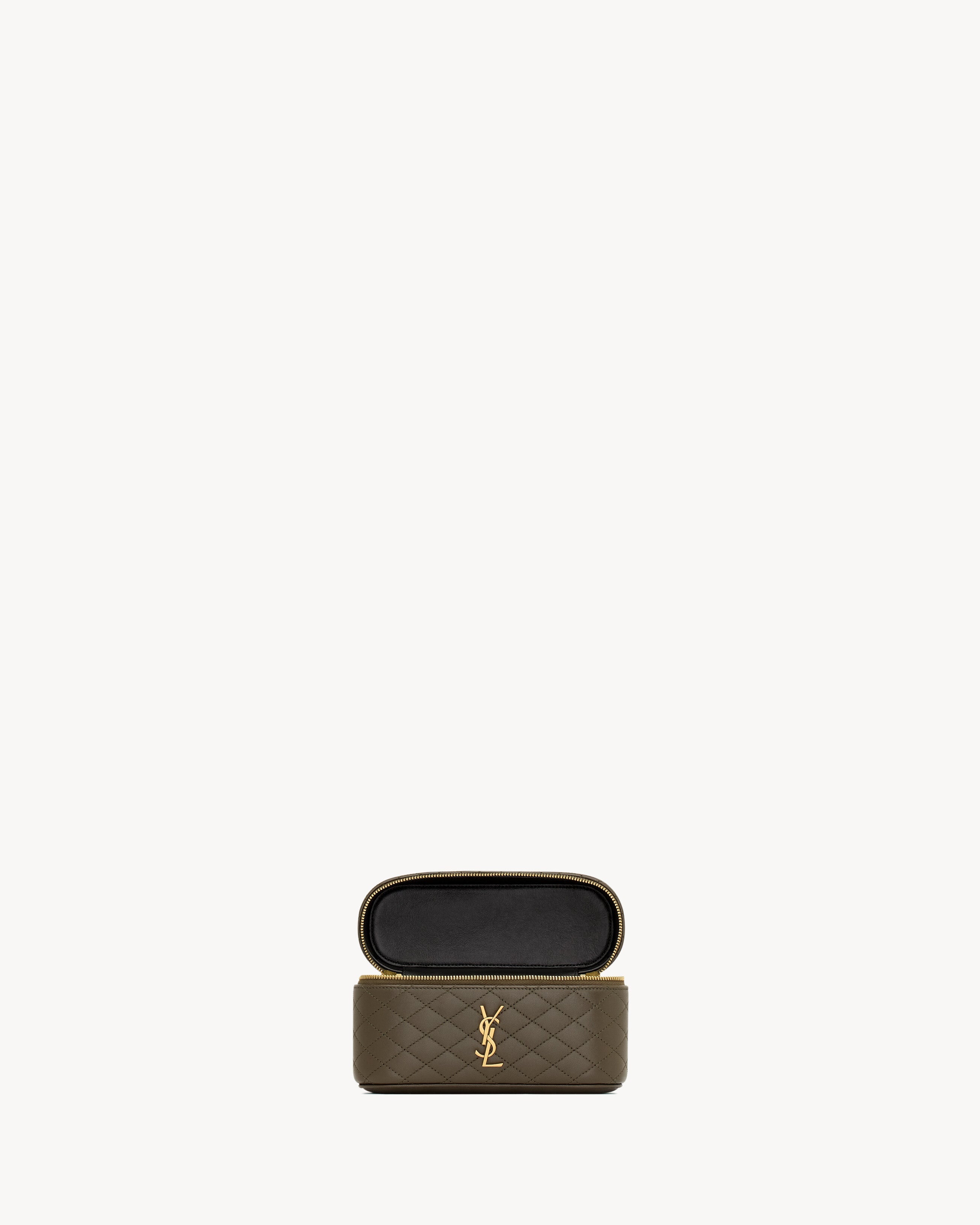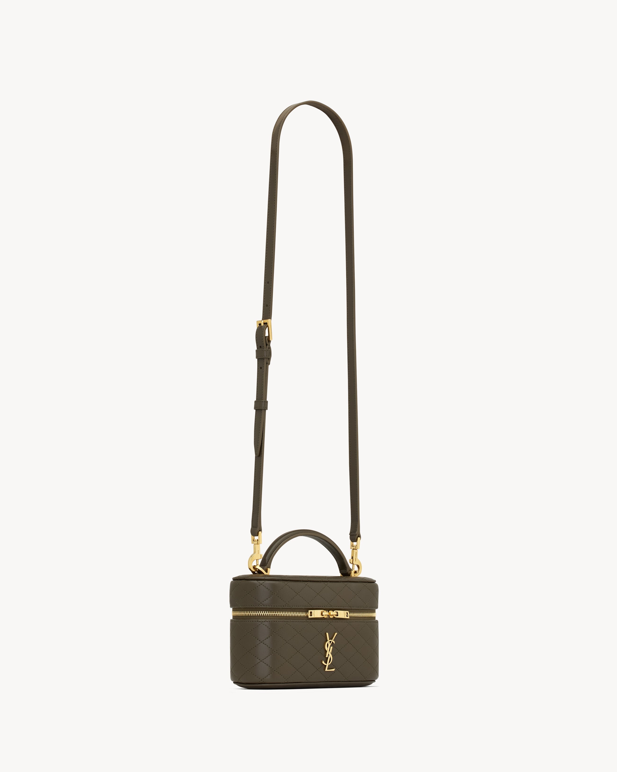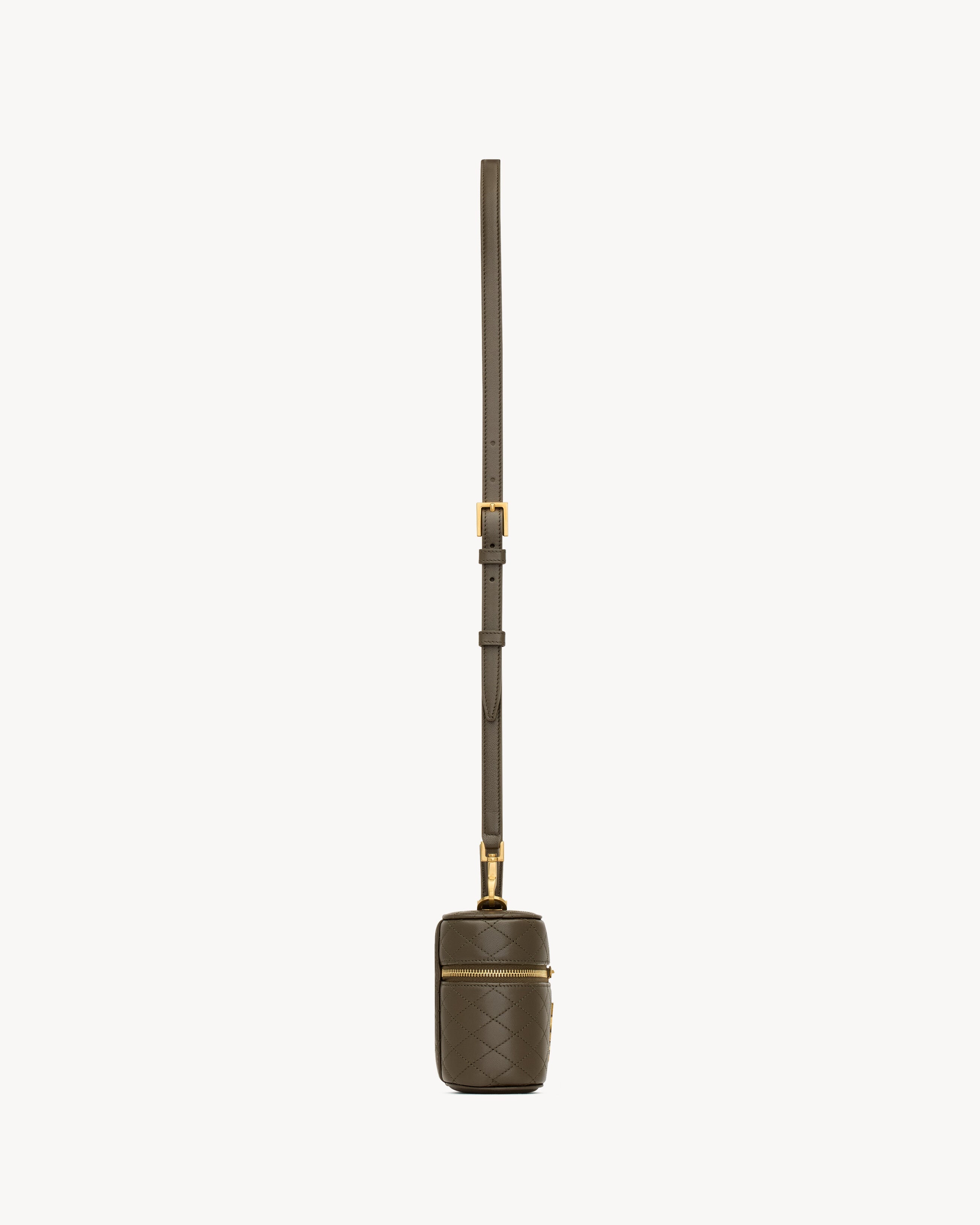 vanity bag decorated with the CASSANDRE and diamond-quilted overstitching. Fully lined in leather, the bag features an adjustable and detachable chain strap for multiple carry options.LEATHER LININGbronze-toned hardwarezip closureone card slotdimensions: 18 x 11 x 6.5 cm / 7.1" x 4.3" x 2.6"STRAP DROP: 52 CM / 20.5"handle drop: 5 cm / 2"LAMBSKIN, BRASSSTYLE ID 7667311EL073212Made in ITALYProduct CareTo maintain the value and appearance of your goods, please observe the following guidelines:- Avoid contact with water, oily substances, perfumes, make-up and other liquid, alcoholic or fatty substances.- Avoid using generic cleaning products such as shoe polish, trichlorethylene, oils, stain removers, alcohol and solvents.- Avoid contact with rough or abrasive surfaces.- Avoid allowing light-coloured products to come into contact with dark or brightly coloured clothing and vice versa. Colours may transfer from one object to another.- Light-coloured bags, especially white and beige bags, are particularly sensitive to light, dust and stains.- Avoid prolonged exposure to light, direct heat and humidity. Materials may be damaged, and their appearance altered.- In case of contact with water, gently pat the area to absorb moisture with a soft, neutral coloured cloth. Avoid excessive rubbing.- Store the product upright in its protective flannel bag. We recommend padding your bag with tissue paper to maintain its shape.