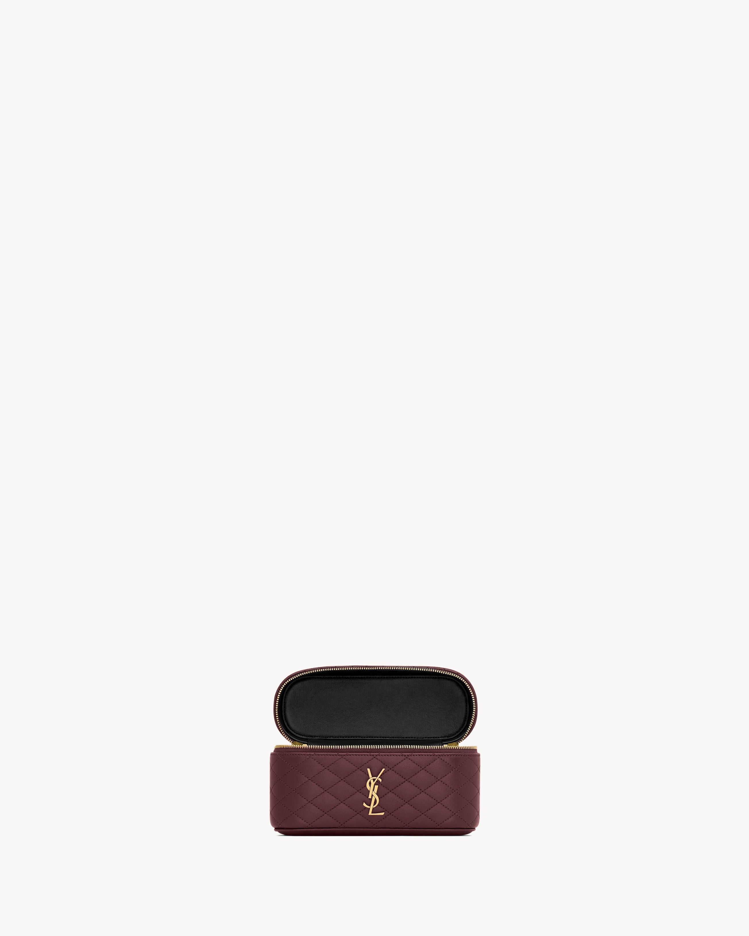 vanity bag decorated with the CASSANDRE and diamond-quilted overstitching. Fully lined in leather, the bag features an adjustable and detachable chain strap for multiple carry options.LEATHER LININGbronze-toned hardwarezip closureone card slotdimensions: 18 x 11 x 6.5 cm / 7.1" x 4.3" x 2.6"STRAP DROP: 52 CM / 20.5"handle drop: 5 cm / 2"LAMBSKIN, BRASSSTYLE ID 7667311EL076195Made in ITALYProduct CareTo maintain the value and appearance of your goods, please observe the following guidelines:- Avoid contact with water, oily substances, perfumes, make-up and other liquid, alcoholic or fatty substances.- Avoid using generic cleaning products such as shoe polish, trichlorethylene, oils, stain removers, alcohol and solvents.- Avoid contact with rough or abrasive surfaces.- Avoid allowing light-coloured products to come into contact with dark or brightly coloured clothing and vice versa. Colours may transfer from one object to another.- Light-coloured bags, especially white and beige bags, are particularly sensitive to light, dust and stains.- Avoid prolonged exposure to light, direct heat and humidity. Materials may be damaged, and their appearance altered.- In case of contact with water, gently pat the area to absorb moisture with a soft, neutral coloured cloth. Avoid excessive rubbing.- Store the product upright in its protective flannel bag. We recommend padding your bag with tissue paper to maintain its shape.