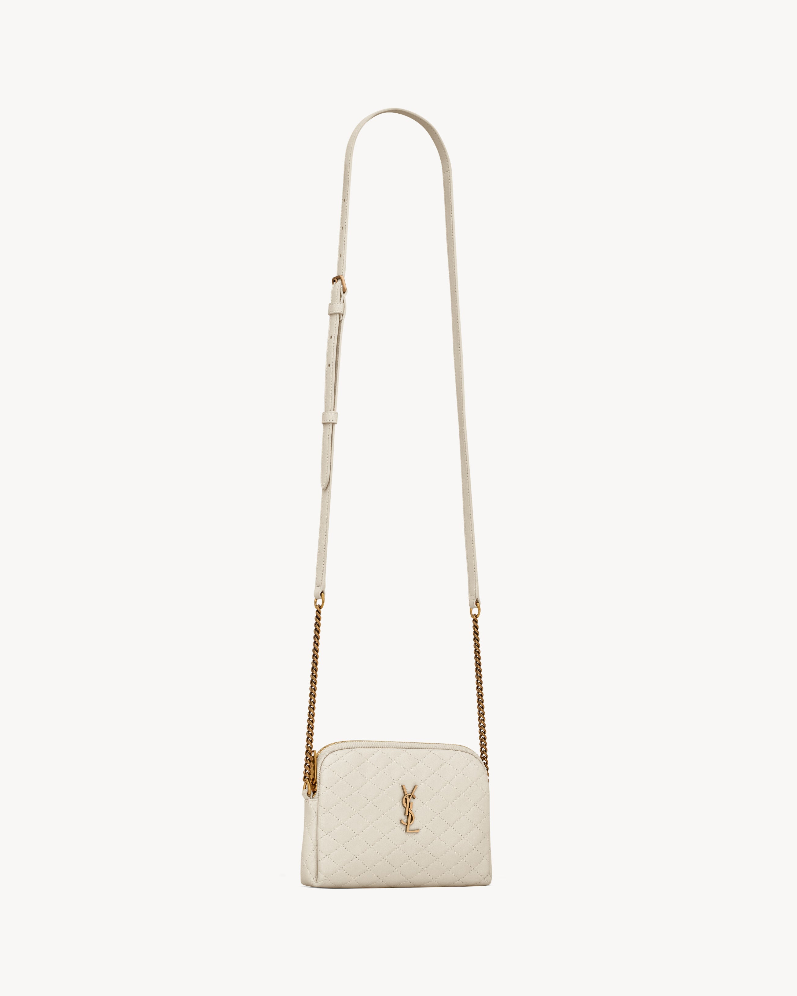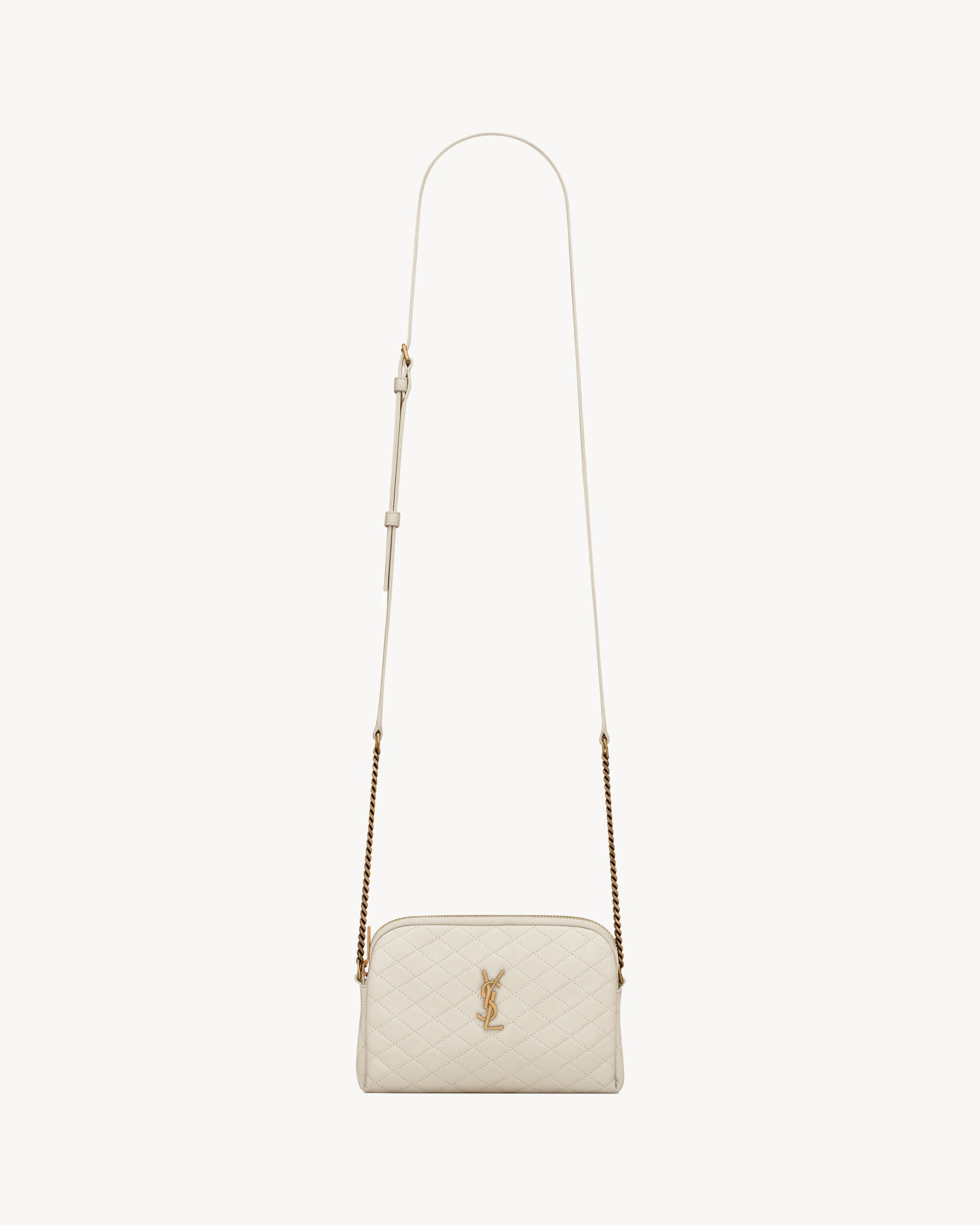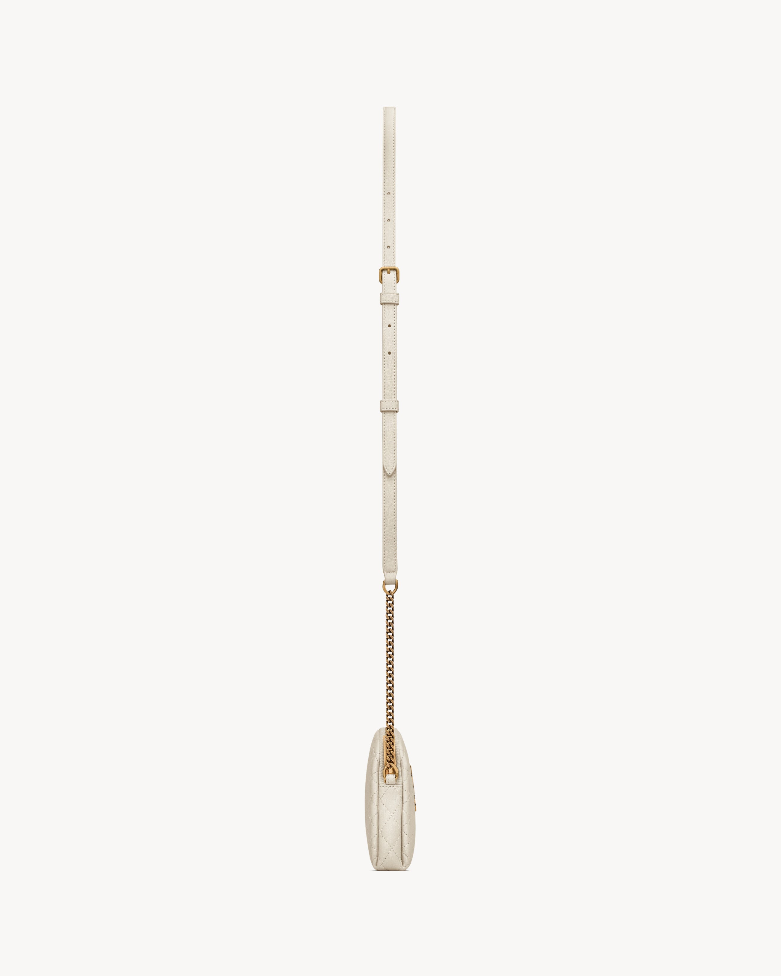 MINI ZIPPERED POUCH WITH QUILTED OVERSTITCHING AND CASANDRE EMBELLISHMENT.THIN AND LIGHT, IT FEATURES AN ADJUSTABLE CHAIN AND LEATHER STRAP FOR CARRYING ON THE SHOULDER OR ACROSS THE BODYLeather liningLight bronze brass hardwareZipper closureDimensions: 19 x 12 x 3 cm / 7.5 x 4.7 x 1.2 inchesStrap length: 54?cm / 22 inchesLAMBSKINSTYLE ID 7336671EL079207Made in ITALYProduct CareTo maintain the value and appearance of your goods, please observe the following guidelines:- Avoid contact with water, oily substances, perfumes, make-up and other liquid, alcoholic or fatty substances.- Avoid using generic cleaning products such as shoe polish, trichlorethylene, oils, stain removers, alcohol and solvents.- Avoid contact with rough or abrasive surfaces.- Avoid allowing light-coloured products to come into contact with dark or brightly coloured clothing and vice versa. Colours may transfer from one object to another.- Light-coloured bags, especially white and beige bags, are particularly sensitive to light, dust and stains.- Avoid prolonged exposure to light, direct heat and humidity. Materials may be damaged, and their appearance altered.- In case of contact with water, gently pat the area to absorb moisture with a soft, neutral coloured cloth. Avoid excessive rubbing.- Store the product upright in its protective flannel bag. We recommend padding your bag with tissue paper to maintain its shape.