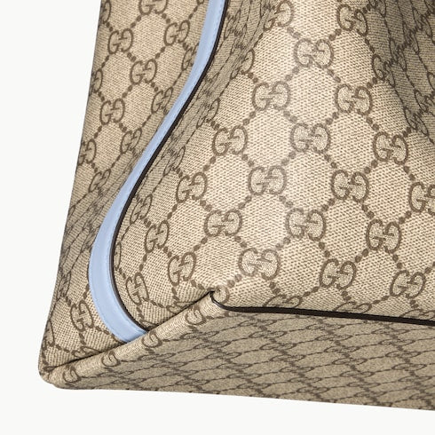 The GG Emblem collection reinterprets the House’s history of elegance and craftsmanship. This tote bag features numbered notches on the adjustable top handles, inspired by the equestrian world.