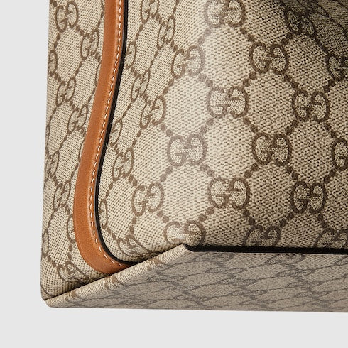 The new GG Emblem collection reinterprets the House’s history of elegance and craftsmanship. This bucket bag highlights functional design with an interior compartment, in Web cotton lining.
