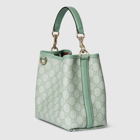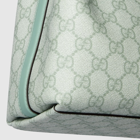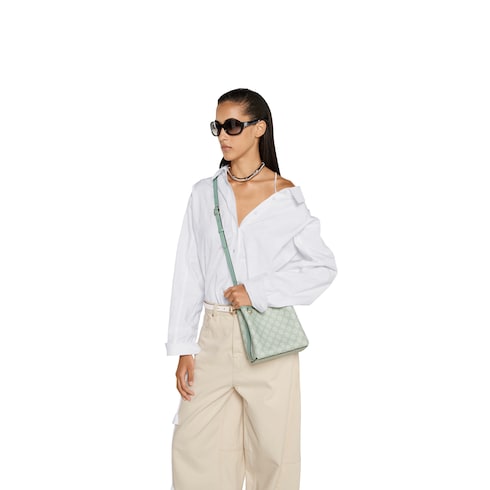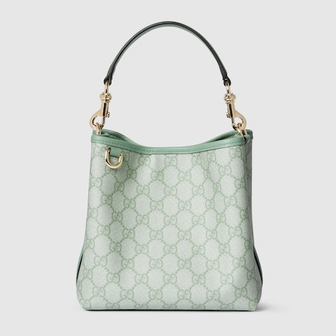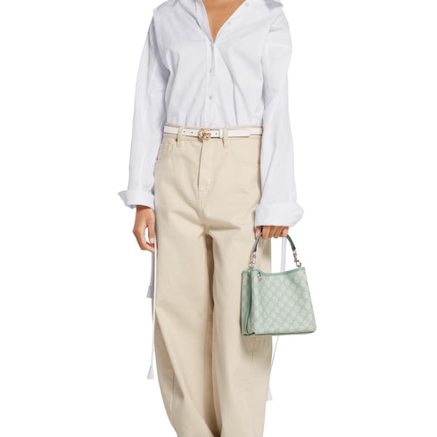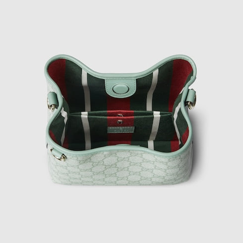 The new GG Emblem collection reinterprets the House’s history of elegance and craftsmanship. This bucket bag highlights functional design with an interior compartment, in Web cotton lining.