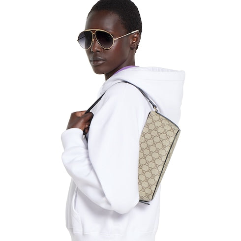 In the Fall Winter 2025 collection, defined by a compact silhouette and essential detailing, this GG Emblem small shoulder bag features a zip closure and a clean-lined structure. The interior includes a flat pocket for added organization, while the shoulder strap offers a comfortable, close-to-body fit.