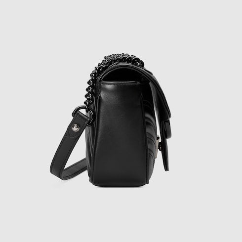 The GG Marmont small shoulder bag has a softly structured shape and an oversized flap closure with Double G hardware. The sliding chain strap can be worn multiple ways, changing between a shoulder and a top handle bag. Made in matelassé chevron leather, the accessory is introduced for Gucci Love Parade with monochrome hardware.