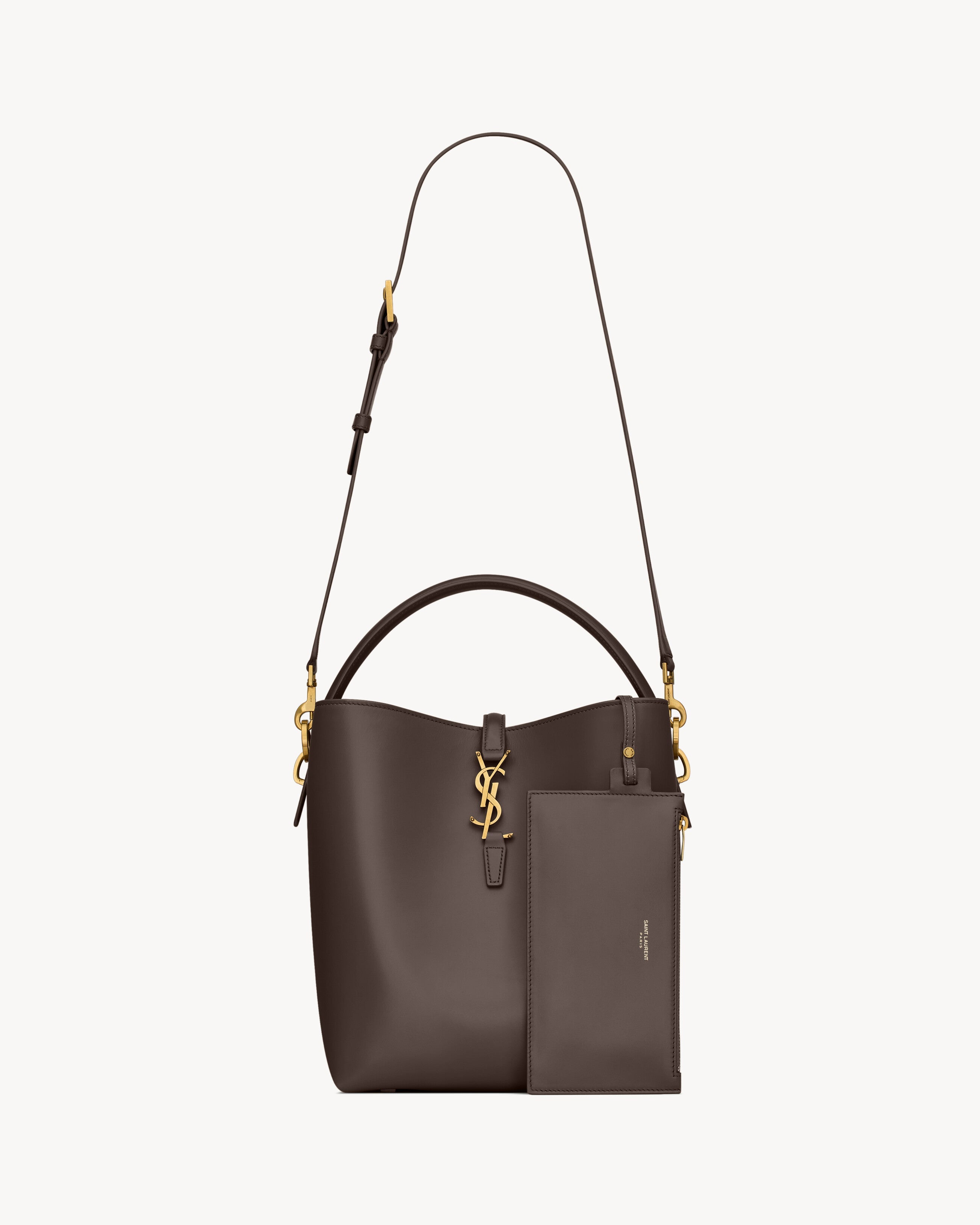 BUCKET BAG FEATURING THE CASSANDRE HOOK CLOSURE, TOP HANDLE AND AN ADJUSTABLE AND DETACHABLE SHOULDER STRAP. The piece is complete with a removable zip pouch.Suede liningLight bronze-toned metal hardwarecassandre hook closureone zipped pouchFour metal feetDimensions: 20 x 25 x 16 cmHandle drop: 9 cmStrap drop: 40 cmCALFSKIN LEATHERSTYLE ID 7428282R20W2877Made in ITALYProduct CareTo maintain the value and appearance of your goods, please observe the following guidelines:- Avoid contact with water, oily substances, perfumes, make-up and other liquid, alcoholic or fatty substances.- Avoid using generic cleaning products such as shoe polish, trichlorethylene, oils, stain removers, alcohol and solvents.- Avoid contact with rough or abrasive surfaces.- Avoid allowing light-coloured products to come into contact with dark or brightly coloured clothing and vice versa. Colours may transfer from one object to another.- Light-coloured bags, especially white and beige bags, are particularly sensitive to light, dust and stains.- Avoid prolonged exposure to light, direct heat and humidity. Materials may be damaged, and their appearance altered.- In case of contact with water, gently pat the area to absorb moisture with a soft, neutral coloured cloth. Avoid excessive rubbing.- Store the product upright in its protective flannel bag. We recommend padding your bag with tissue paper to maintain its shape.