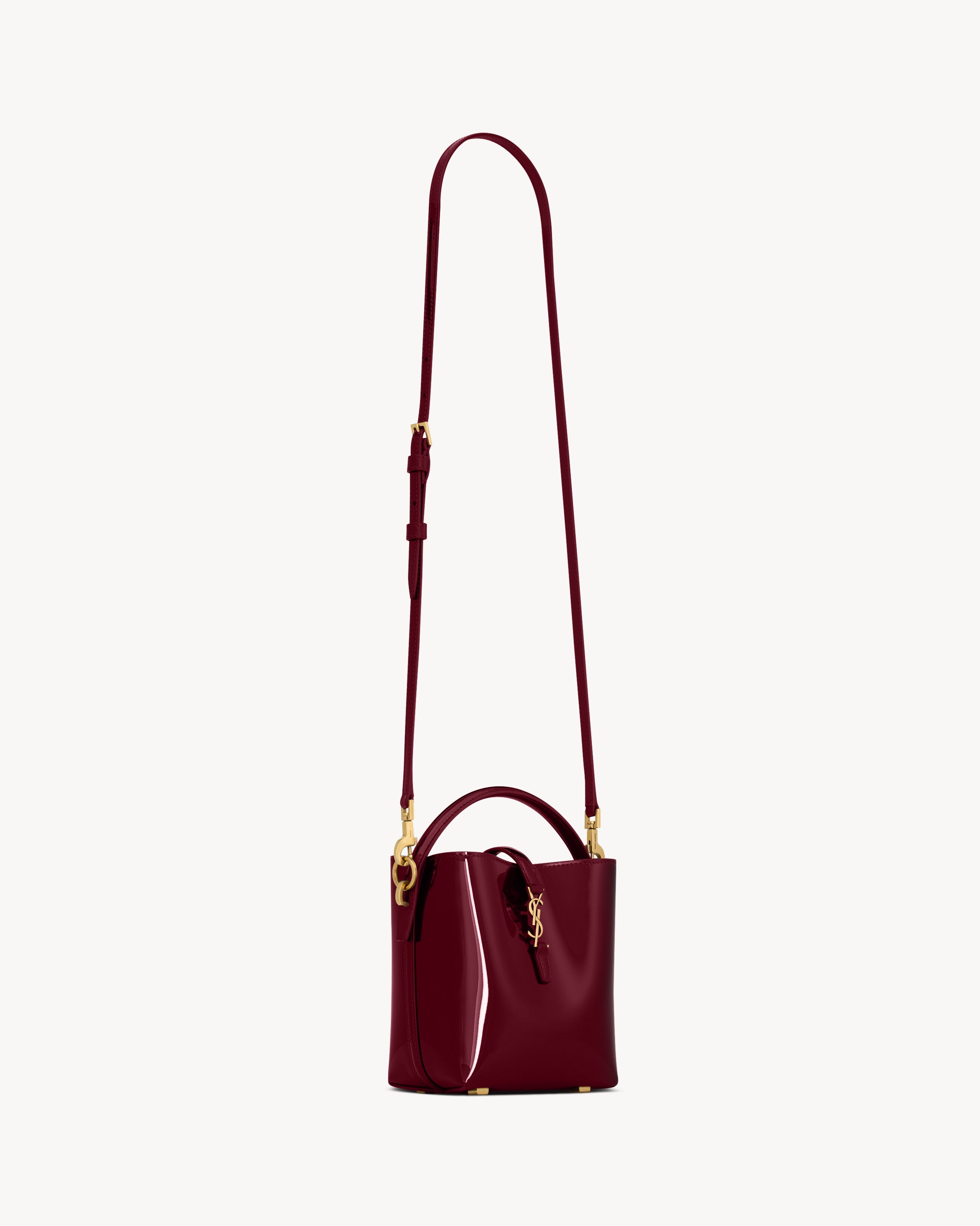 mini version of the LE 37 bucket bag, featuring a CASSANDRE hook closure. A top handle and adjustable and detachable strap provide bespoke carry options.