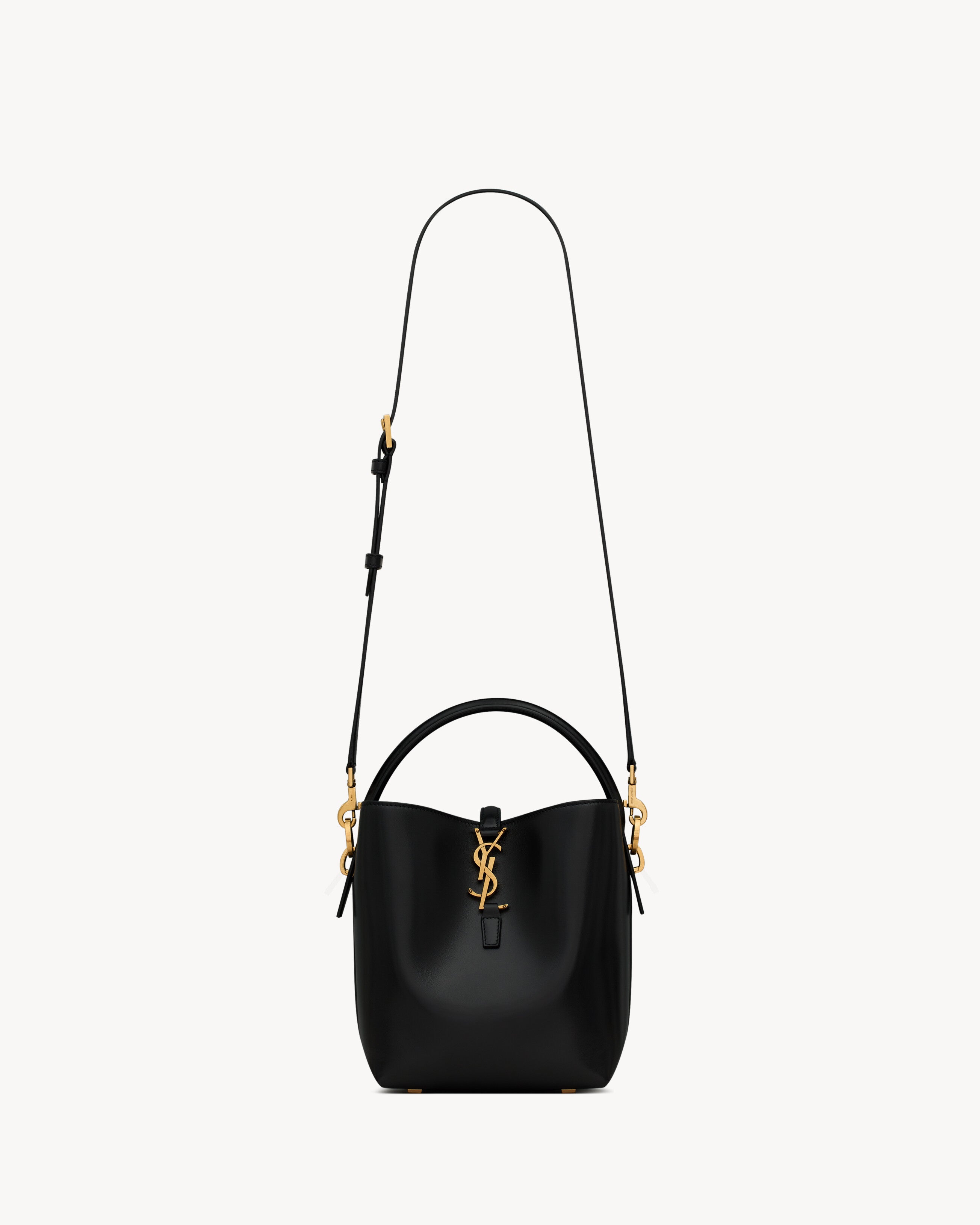 Bucket bag featuring the CASSANDRE hook closure, top handle and an adjustable and detachable shoulder strap.suede liningbronze-toned hardwaremetal CASSANDRE hook closurefour metal feetDIMENSIONS: 17 X 20 X 13 CM / 6.7 x 7.9 x 5.1 inchesHANDLE DROP: 6 CM / 2.4 inchesSTRAP DROP: 45 CM / 17.7 inchesCALFSKIN LEATHERSTYLE ID 7490362R20W1000Made in ITALYProduct CareTo maintain the value and appearance of your goods, please observe the following guidelines:- Avoid contact with water, oily substances, perfumes, make-up and other liquid, alcoholic or fatty substances.- Avoid using generic cleaning products such as shoe polish, trichlorethylene, oils, stain removers, alcohol and solvents.- Avoid contact with rough or abrasive surfaces.- Avoid allowing light-coloured products to come into contact with dark or brightly coloured clothing and vice versa. Colours may transfer from one object to another.- Light-coloured bags, especially white and beige bags, are particularly sensitive to light, dust and stains.- Avoid prolonged exposure to light, direct heat and humidity. Materials may be damaged, and their appearance altered.- In case of contact with water, gently pat the area to absorb moisture with a soft, neutral coloured cloth. Avoid excessive rubbing.- Store the product upright in its protective flannel bag. We recommend padding your bag with tissue paper to maintain its shape.