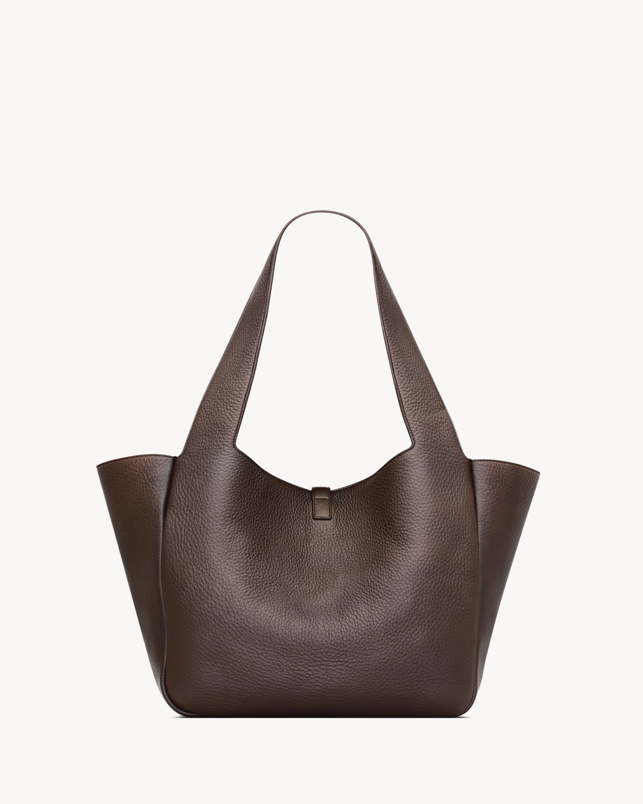 SUPPLE EAST/WEST TOTE IN DEERSKIN, DEFINED BY ITS LEATHER TAB CLOSURE DECORATED WITH THE CASSANDRE.