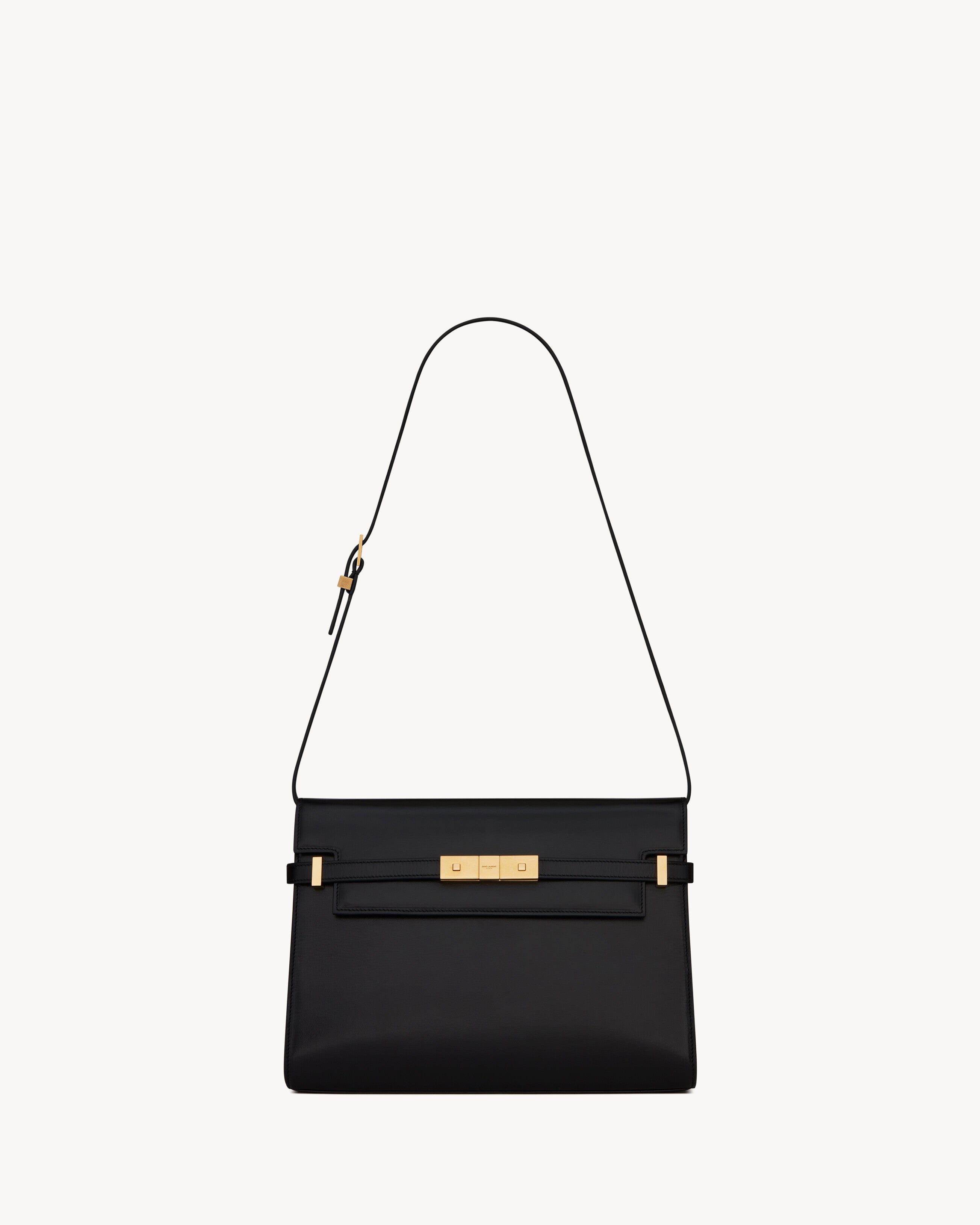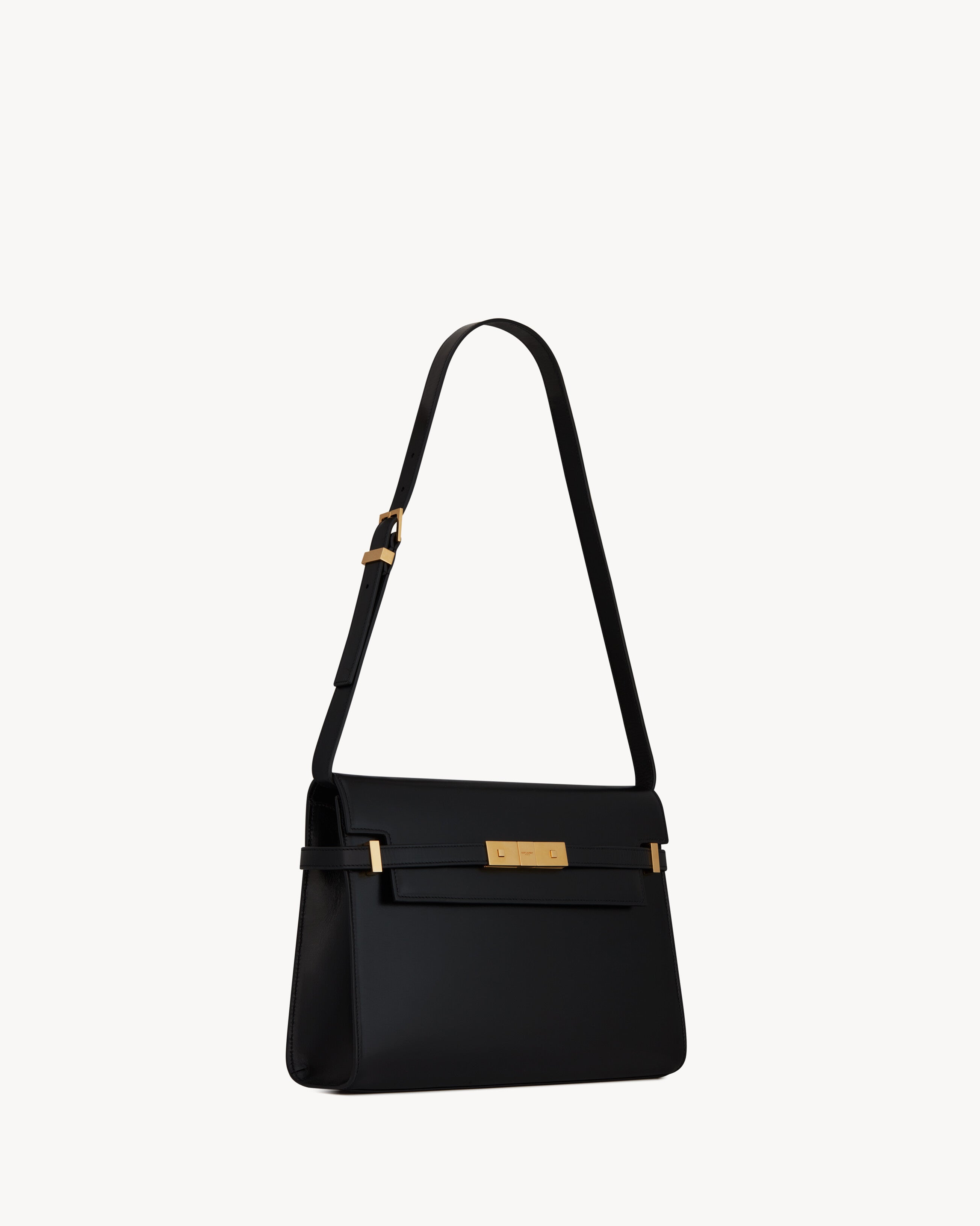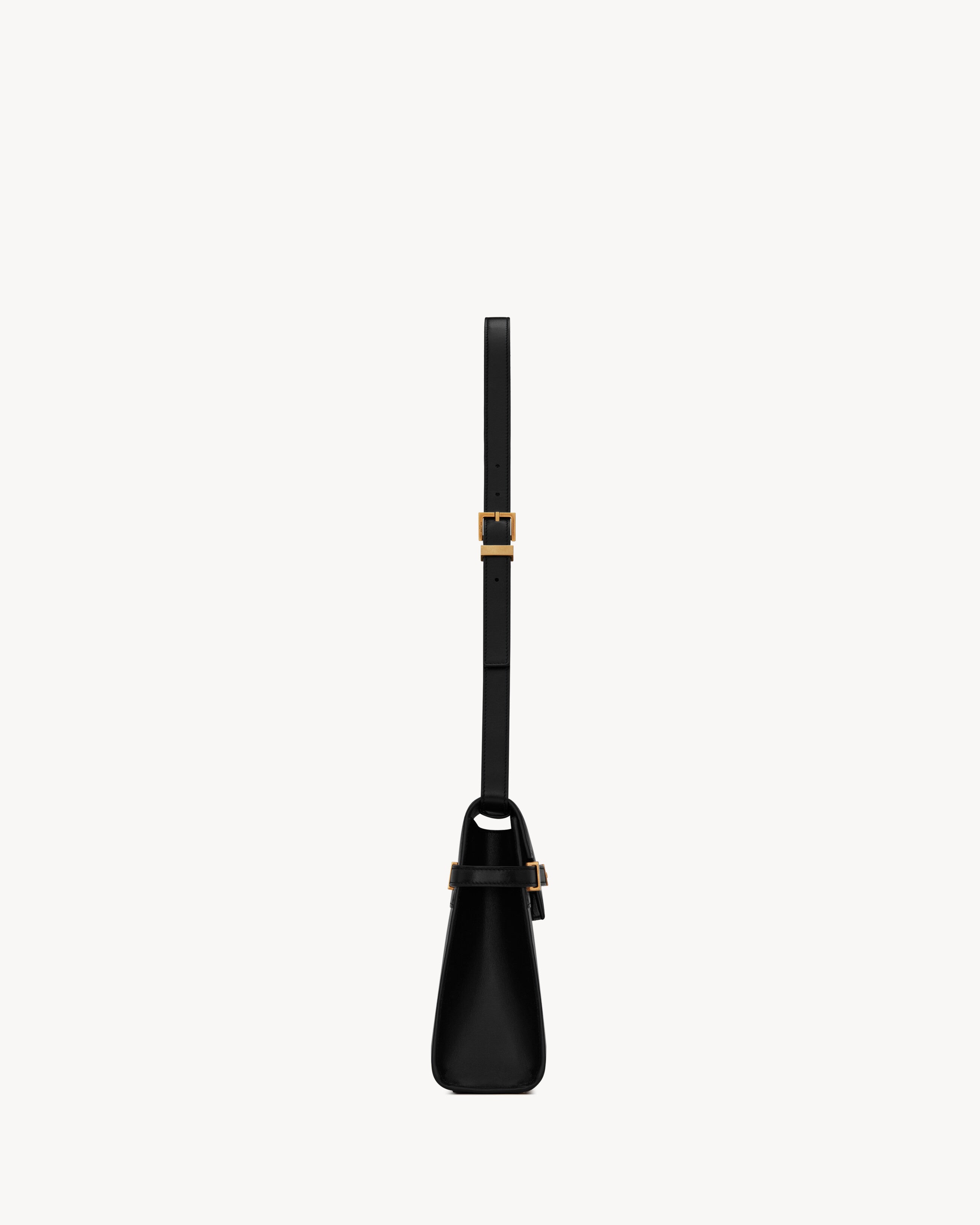 Manhattan with small flap on top, compression tabs on the sides and an adjustable, detachable shoulder strap.Dimensions: 29 x 20 x 7,5 CM / 11.4 x 7.8 x 2.9 INCHESshoulder strap drop: 31 cmbronze-toned metal hardwaremagnetic clip buckle closureinterior: one main compartment, one flat pocketleather liningCALFSKIN LEATHER, METALSTYLE ID 5792710SX0W1000Made in ITALYProduct CareTo maintain the value and appearance of your goods, please observe the following guidelines:- Avoid contact with water, oily substances, perfumes, make-up and other liquid, alcoholic or fatty substances.- Avoid using generic cleaning products such as shoe polish, trichlorethylene, oils, stain removers, alcohol and solvents.- Avoid contact with rough or abrasive surfaces.- Avoid allowing light-coloured products to come into contact with dark or brightly coloured clothing and vice versa. Colours may transfer from one object to another.- Light-coloured bags, especially white and beige bags, are particularly sensitive to light, dust and stains.- Avoid prolonged exposure to light, direct heat and humidity. Materials may be damaged, and their appearance altered.- In case of contact with water, gently pat the area to absorb moisture with a soft, neutral coloured cloth. Avoid excessive rubbing.- Store the product upright in its protective flannel bag. We recommend padding your bag with tissue paper to maintain its shape.