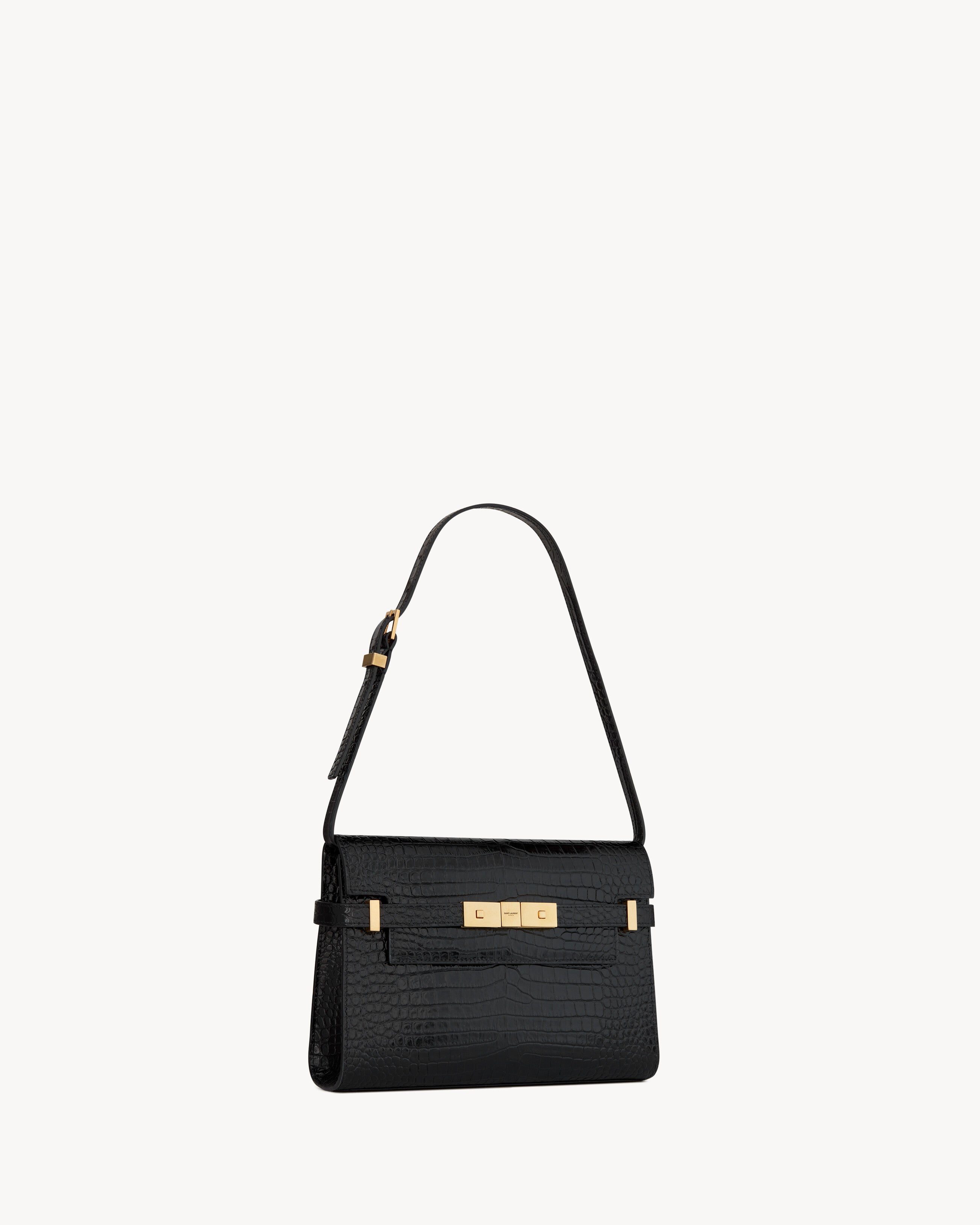 MANHATTAN SMALL IN SHINY CROCODILE-EMBOSSED LEATHER BLACK