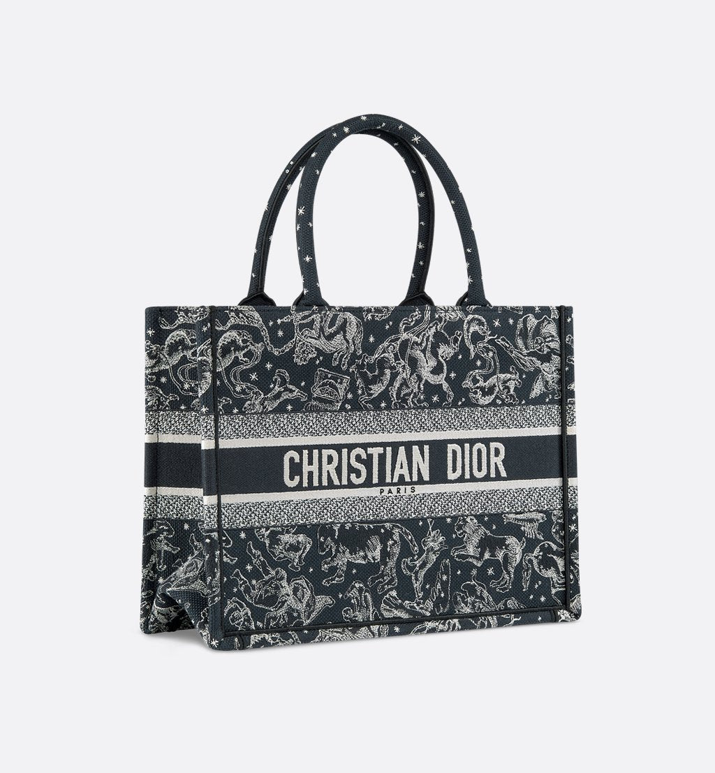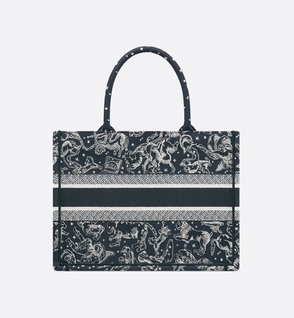 Medium Book Tote Blue Multicolor Zodiac Embroidery