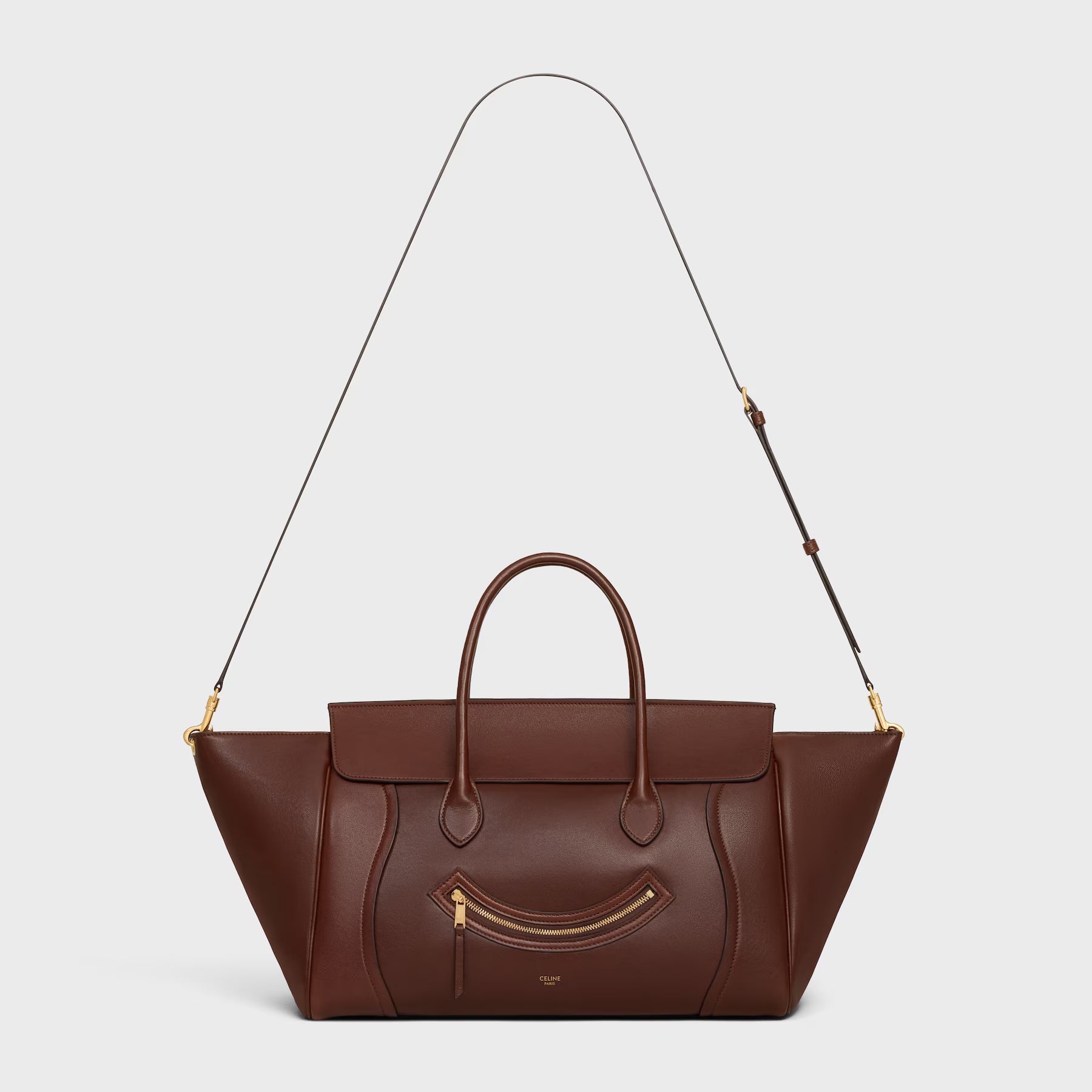THE NEW NINO BAG IS MADE BY CELINE’S ARTISAN LEATHERMAKERS IN THE UPMOST TRADITIONAL WAY. A REFINED, HIGH END SUPPLE CALFSKIN LEATHER WITH A SOFT HAND AND REINFORCEMENTS THAT HAVE BEEN CAREFULLY STUDIED TO ACHIEVE A STRUCTURED YET SUPPLE LOOK. THE CELINE NINO BAG FEATURES A TOP HANDLE AND IS EMBELLISHED WITH THE ICONIC TRIOMPHE SIGNATURE HARDWARE.