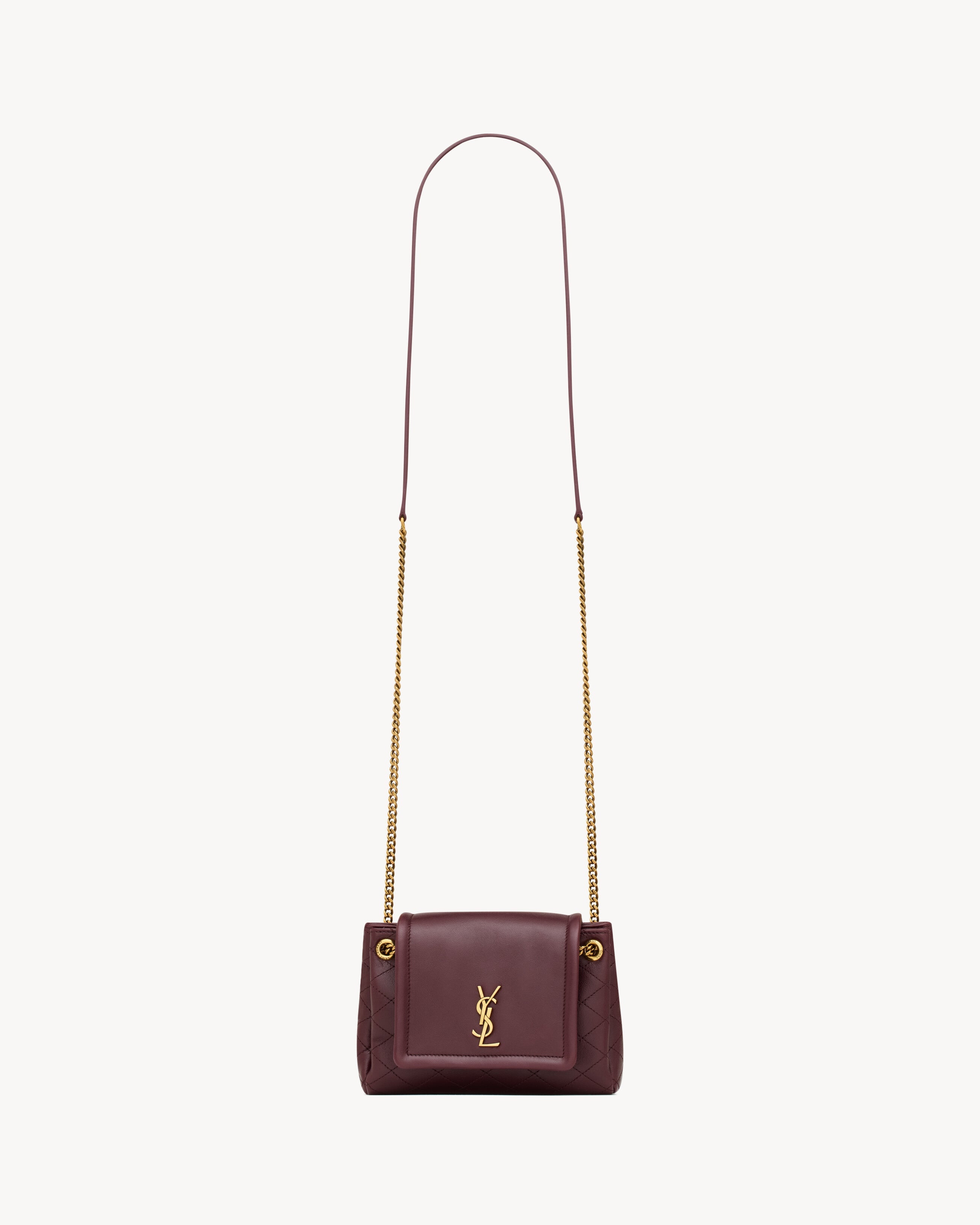 MINI BAG WITH FRONT FLAP, DECORATED WITH THE CASSANDRE AND ICONIC CHEVRON-QUILTED TOPSTITCHING.