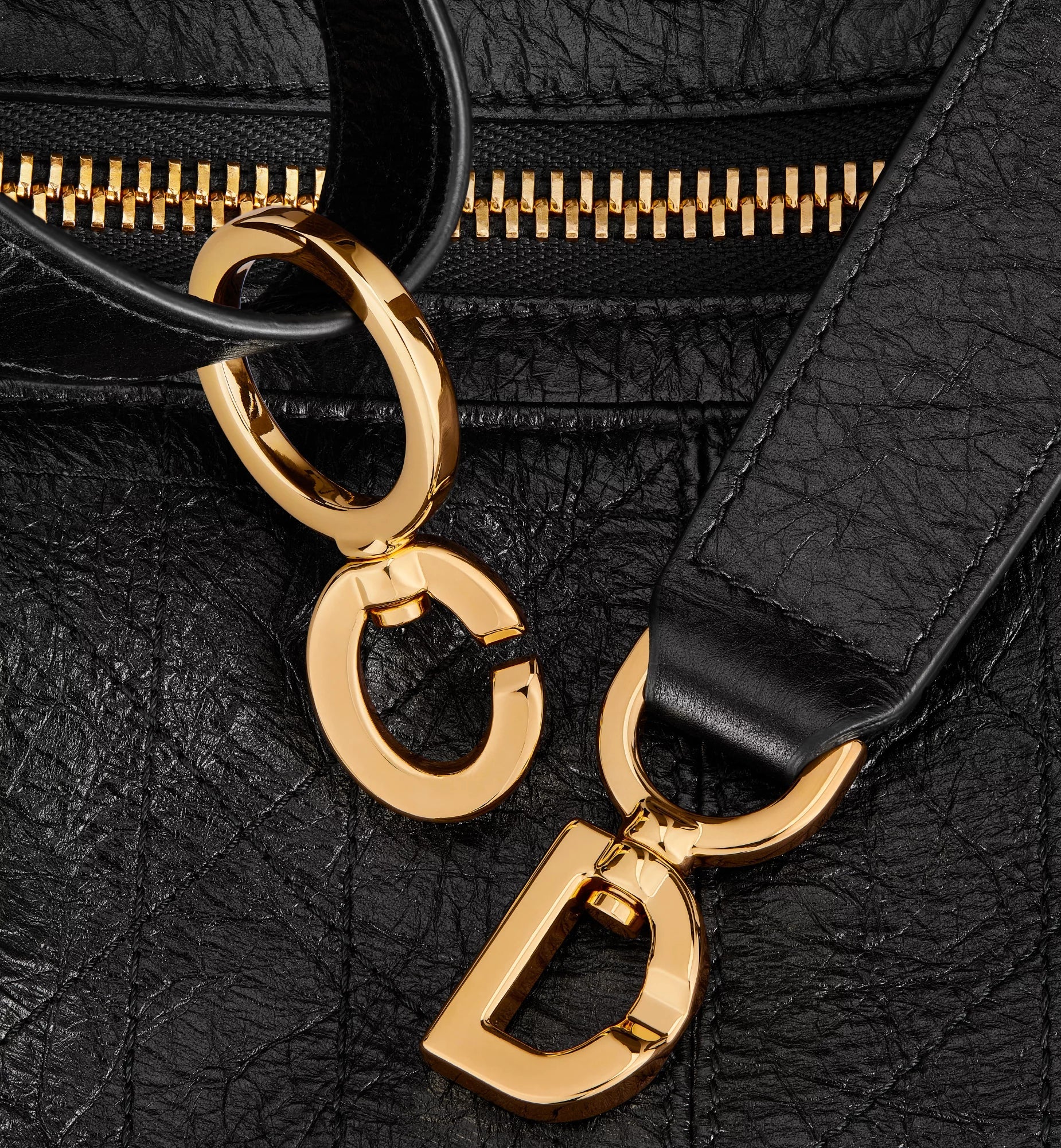 Leather strap and adjustable top handles with gold-finish metal CD hook