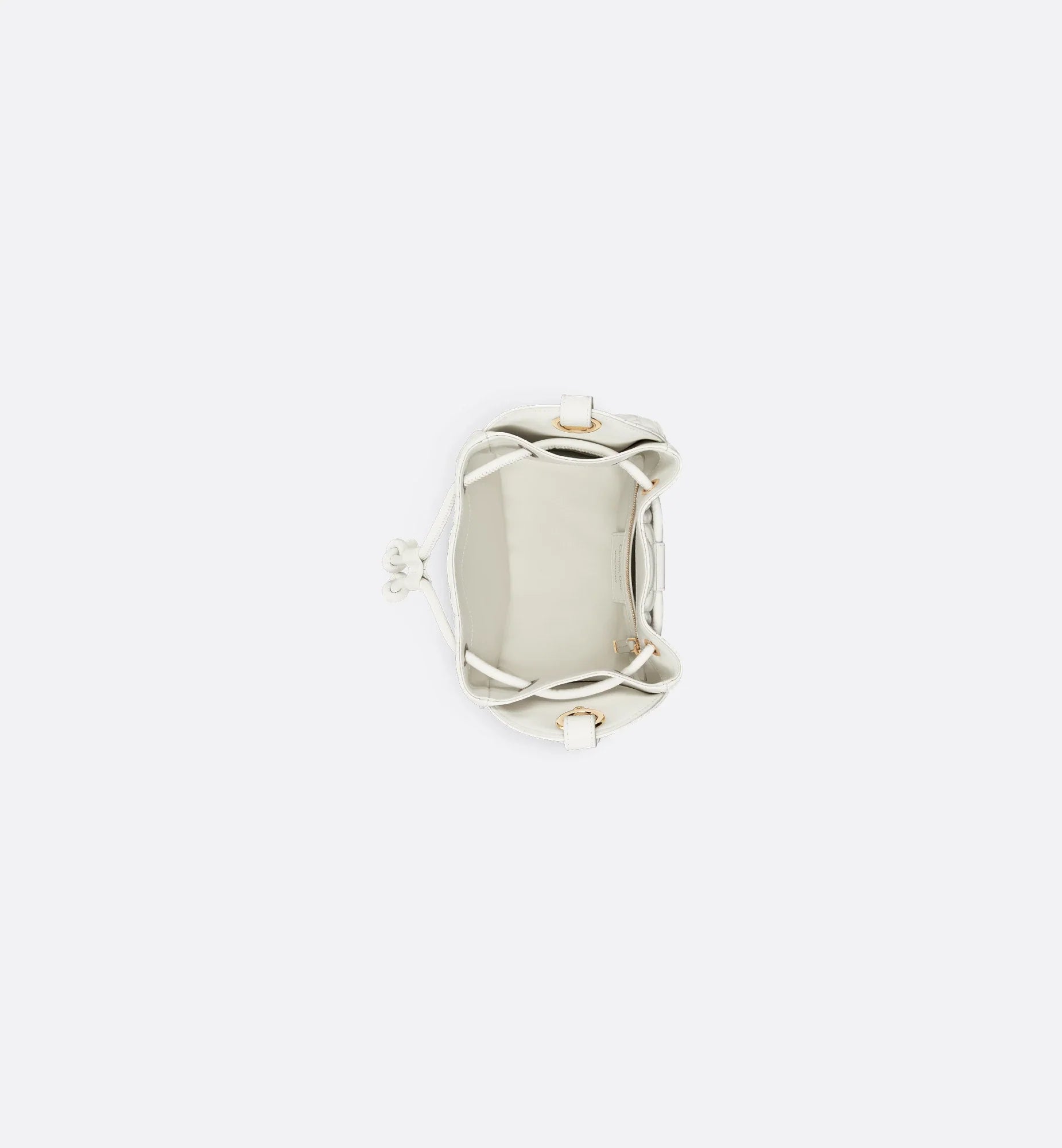 New for Winter 2025, the bag is distinguished by a modern and practical bucket design. Crafted in ivory lambskin with Macrocannage stitching, the supple style features a drawstring closure that opens to reveal a spacious interior compartment with a zip pocket for all the essentials. Adorned with pale gold-finish metal charms, the small bag has an adjustable strap with a sliding design, allowing it to be worn on the shoulder or crossbody.