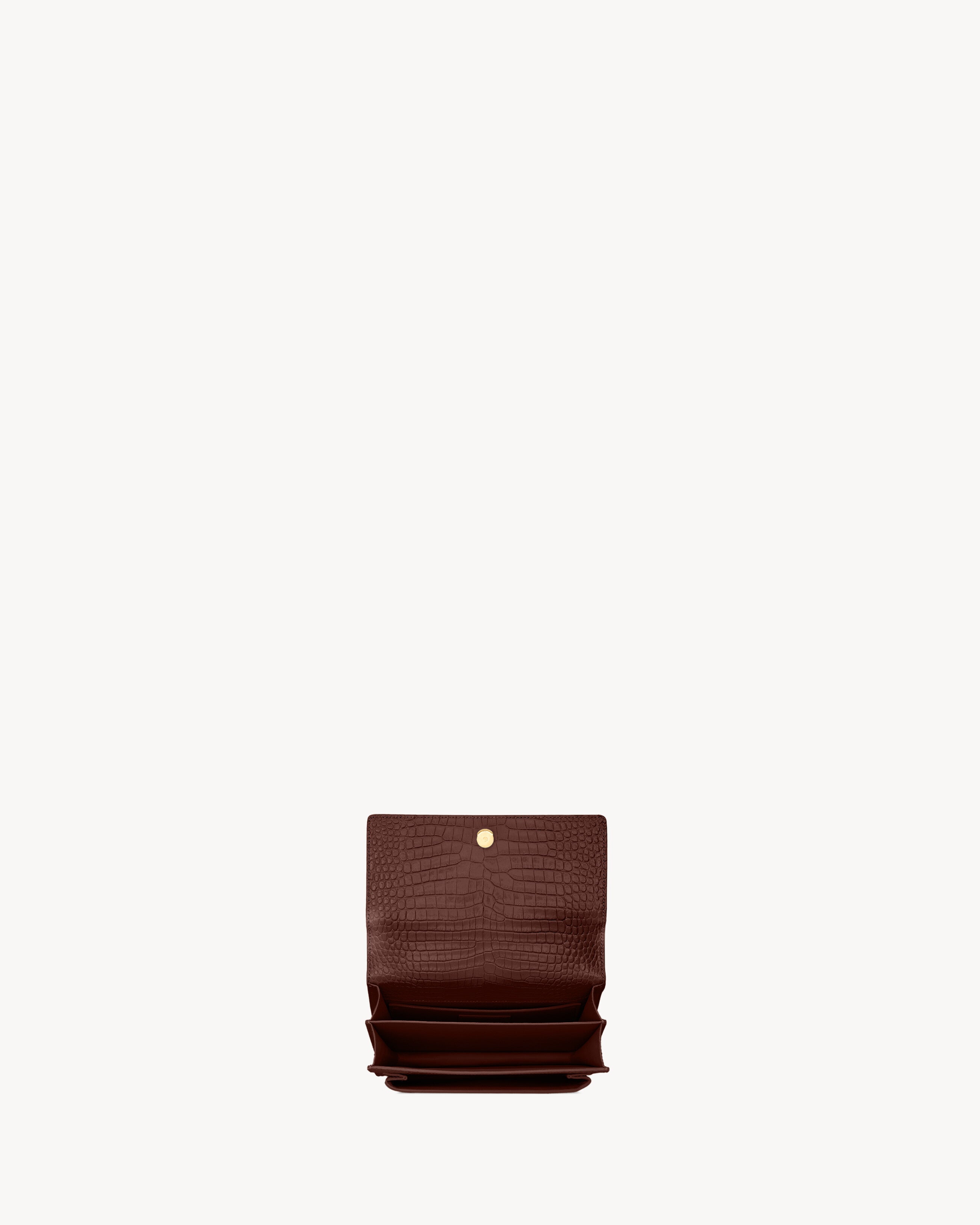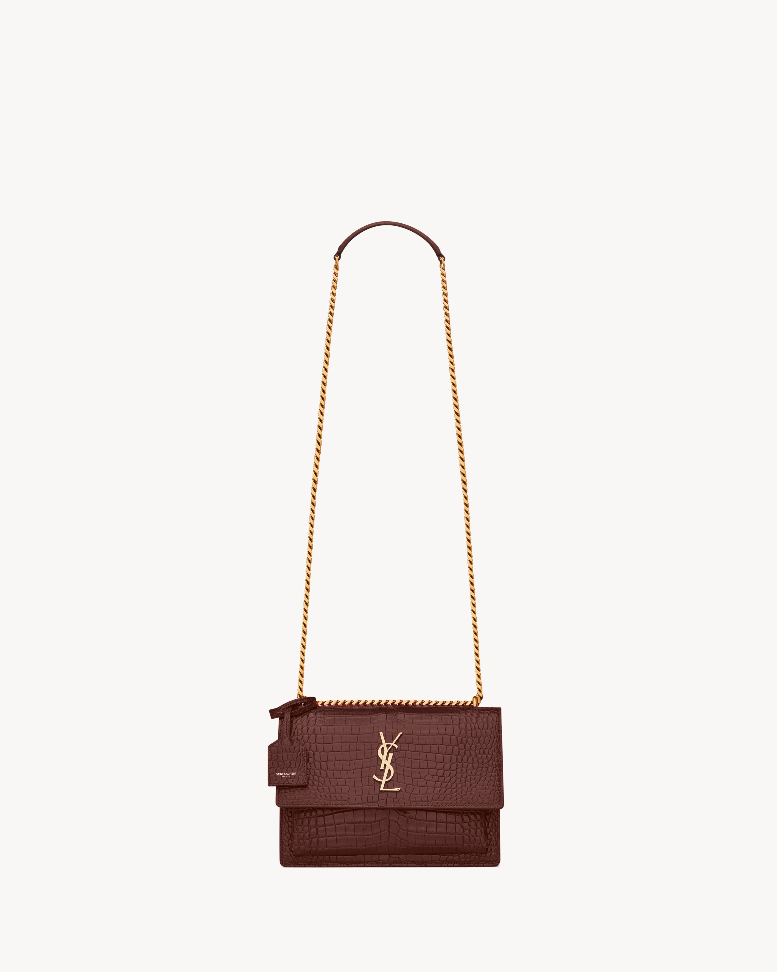 LEATHER-LINED FLAP BAG, WITH THE CASSANDRE AND DETACHABLE LEATHER CHARM. FUNCTIONAL AND STRUCTURED WITH ACCORDION SIDES, IT FEATURES A DOUBLE COMPARTMENT, A FRONT POCKET AND A LARGE BACK SLOT POCKET.SLIDING CHAIN CAN BE WORN ON THE SHOULDER OR CROSSBODY.LEATHER LININGLIGHT BRONZE BRASS HARDWAREMAGNETIC SNAP TABONE INTERIOR SLOT POCKETDIMENSIONS: 8 x 6.2 x 2.5 INCHESCHAIN LENGTH: 11 TO 20 INCHESCALFSKINSTYLE ID 442906DND0J6147Made in ITALYProduct CareTo maintain the value and appearance of your goods, please observe the following guidelines:- Avoid contact with water, oily substances, perfumes, make-up and other liquid, alcoholic or fatty substances.- Avoid using generic cleaning products such as shoe polish, trichlorethylene, oils, stain removers, alcohol and solvents.- Avoid contact with rough or abrasive surfaces.- Avoid allowing light-coloured products to come into contact with dark or brightly coloured clothing and vice versa. Colours may transfer from one object to another.- Light-coloured bags, especially white and beige bags, are particularly sensitive to light, dust and stains.- Avoid prolonged exposure to light, direct heat and humidity. Materials may be damaged, and their appearance altered.- In case of contact with water, gently pat the area to absorb moisture with a soft, neutral coloured cloth. Avoid excessive rubbing.- Store the product upright in its protective flannel bag. We recommend padding your bag with tissue paper to maintain its shape.